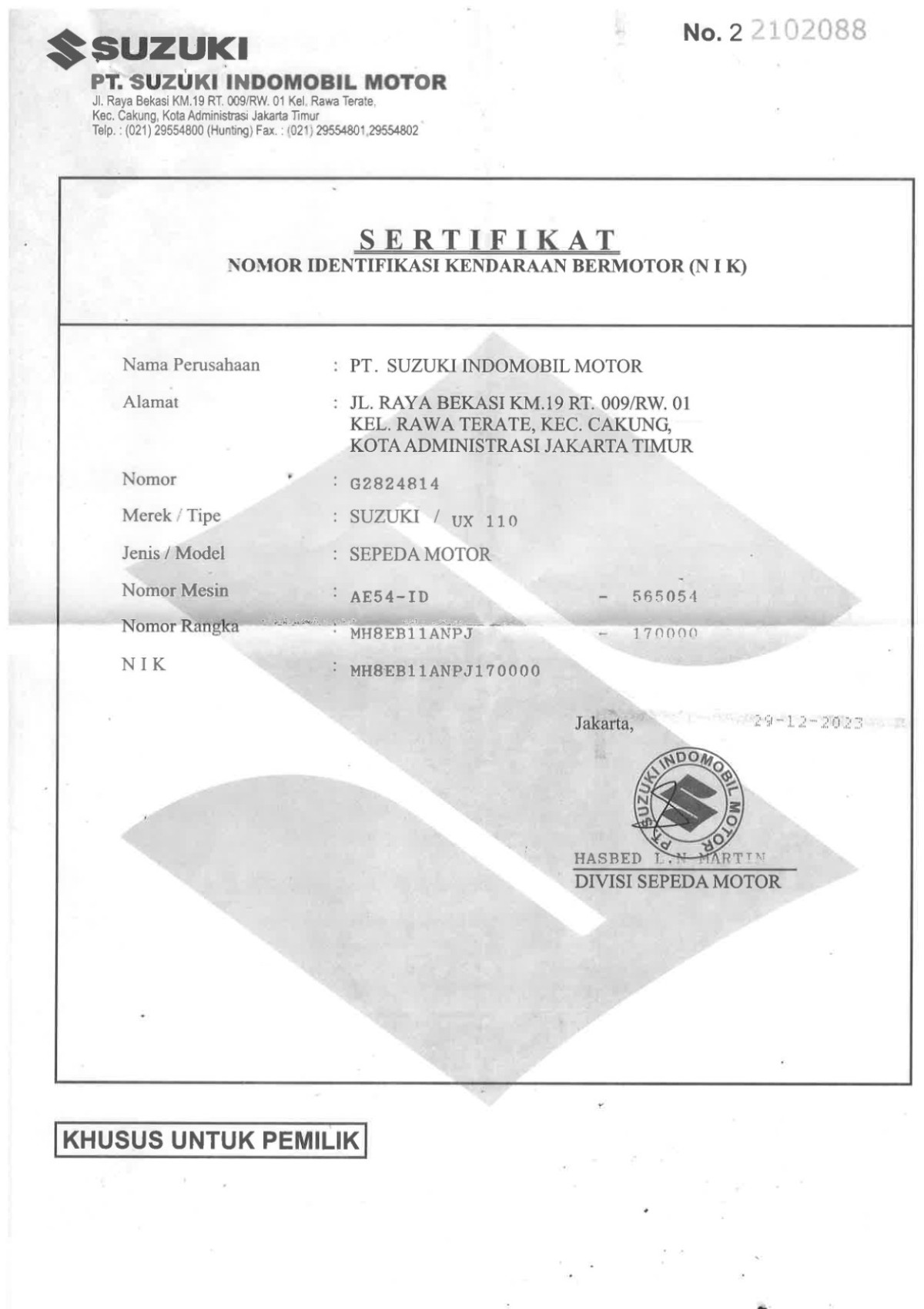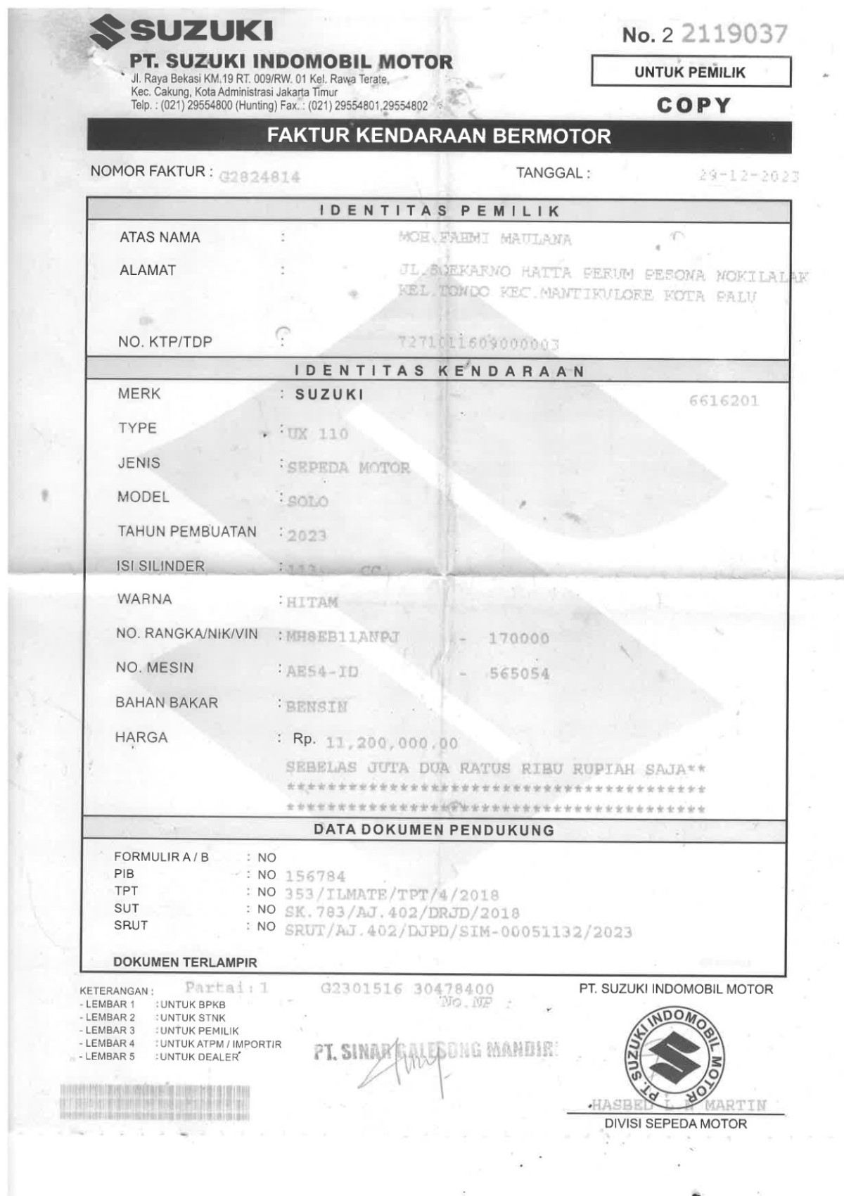 | No. Rangka | : | MH8EB11ANPJ170000 |