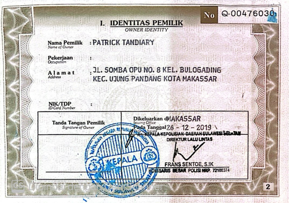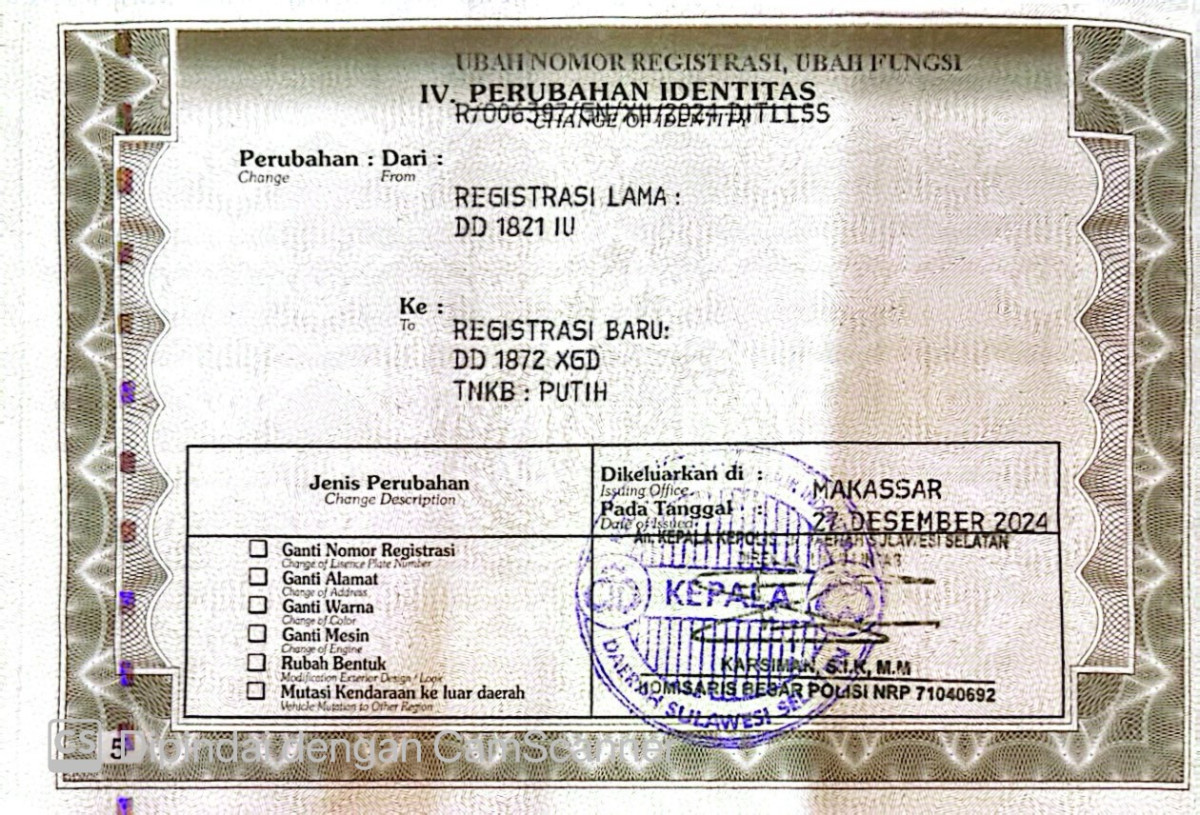 No. Polisi | : | DD 1872 XGD |