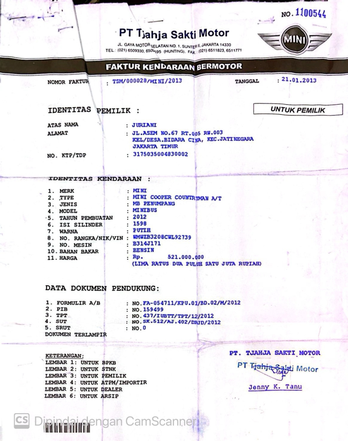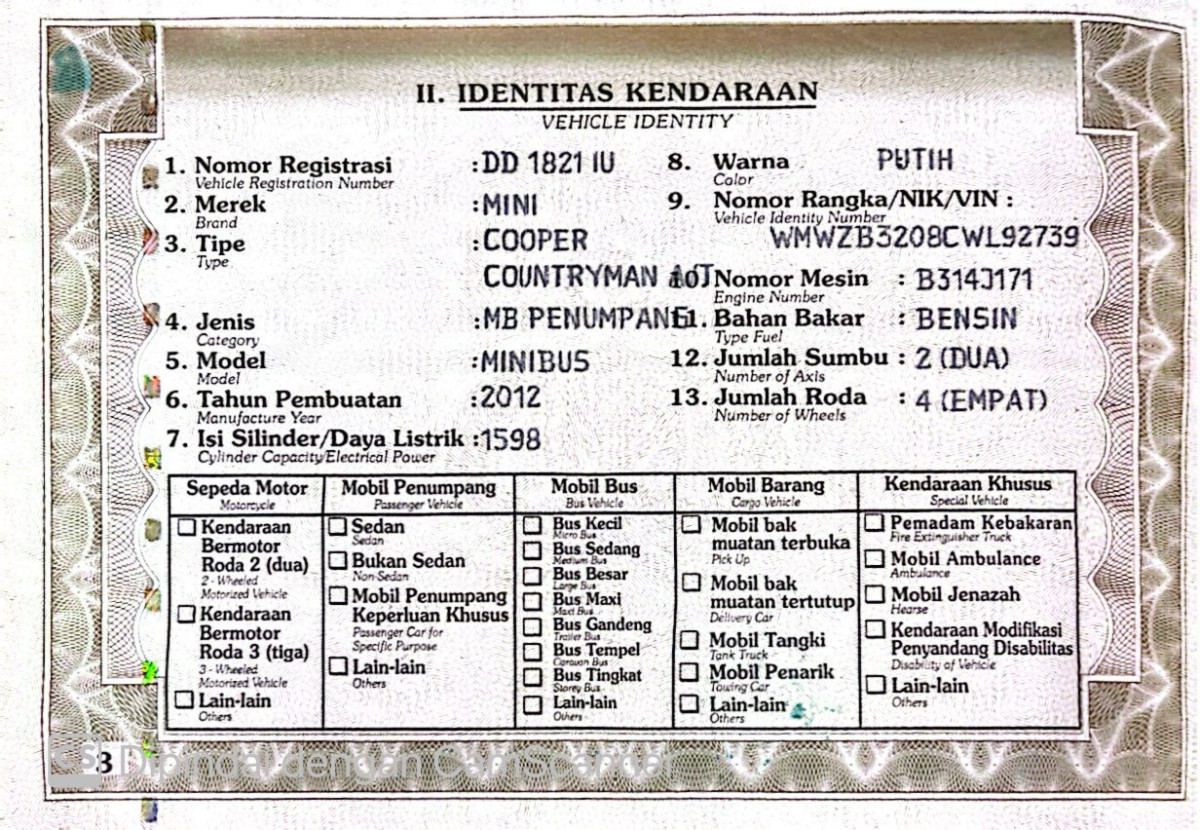 No. Rangka | : | WMWZB3208CWL92739 |