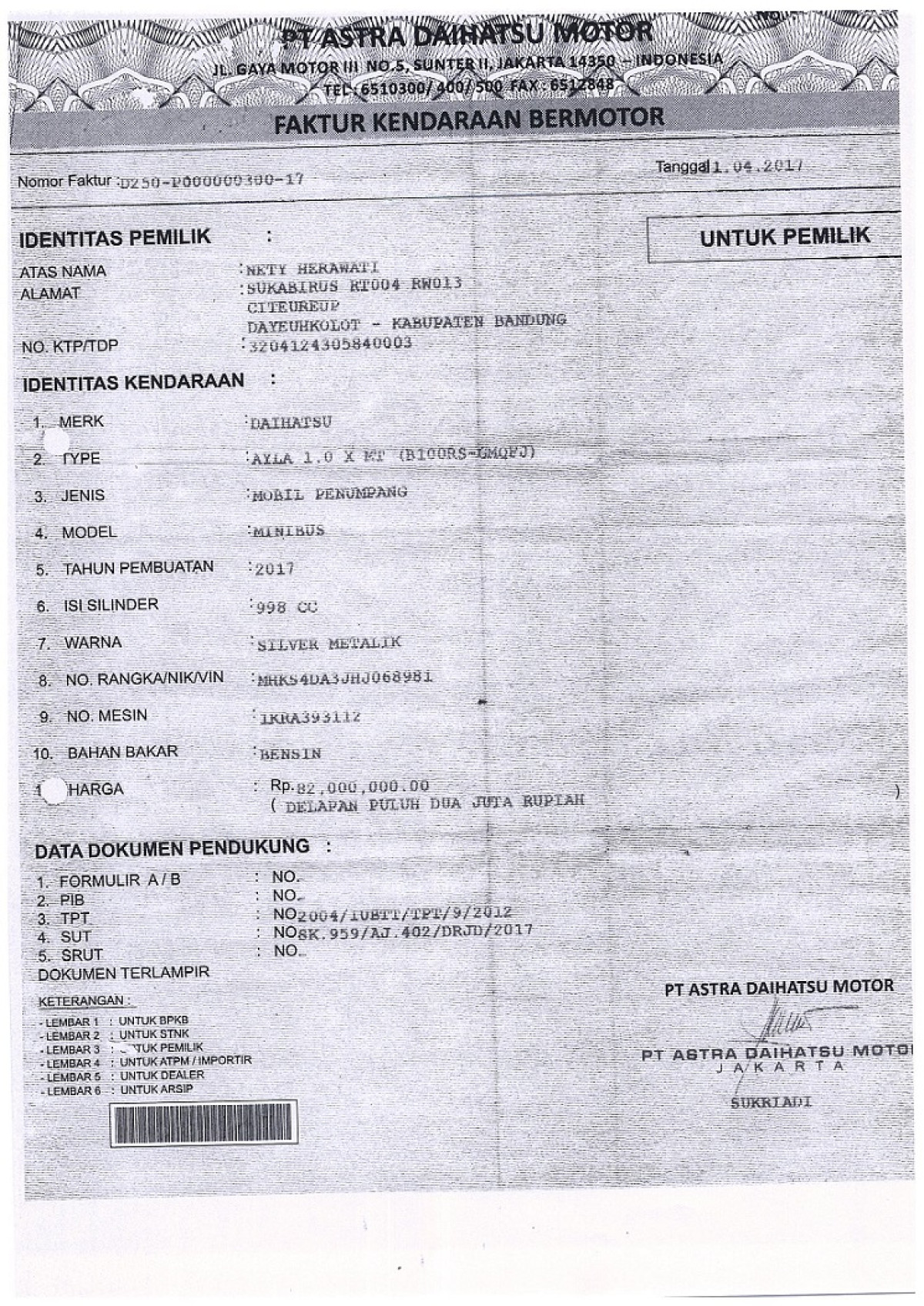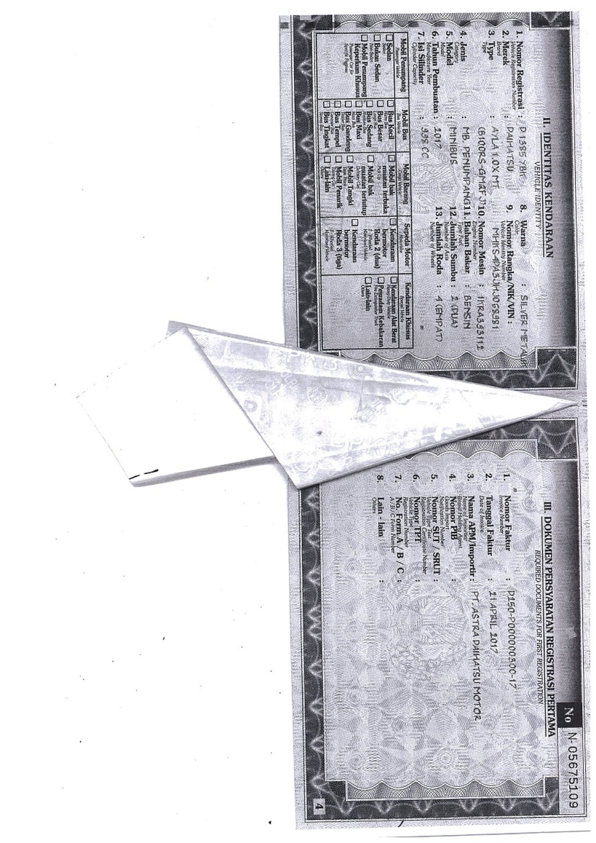 No. Rangka | : | MHKS4DA3JHJ068981 |