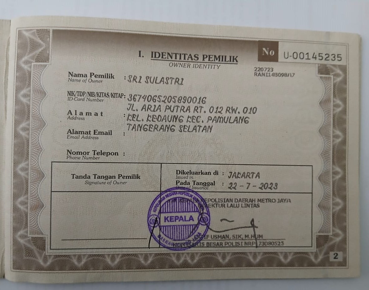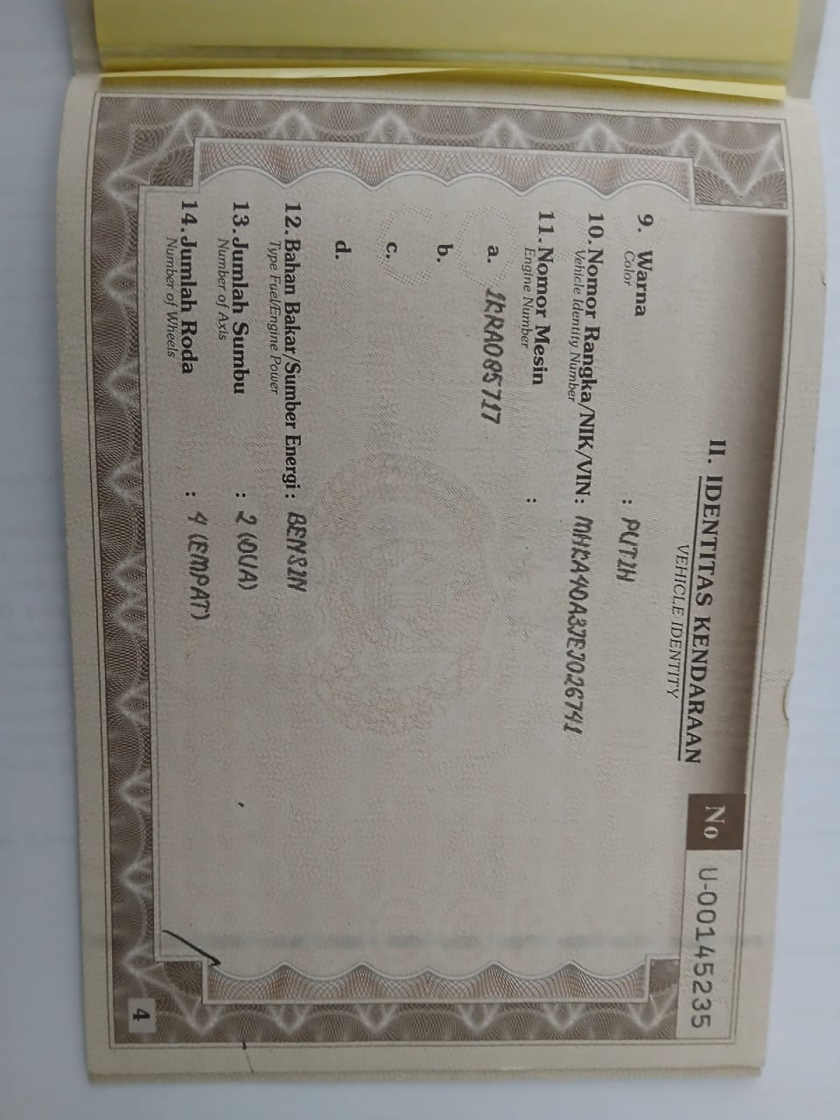 No. Rangka | : | MHKA4DA3JEJ026741 |