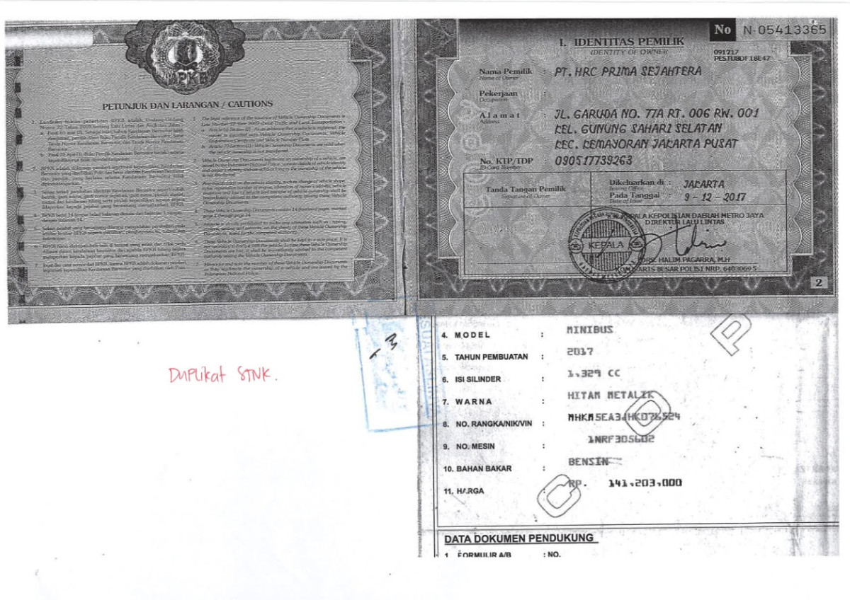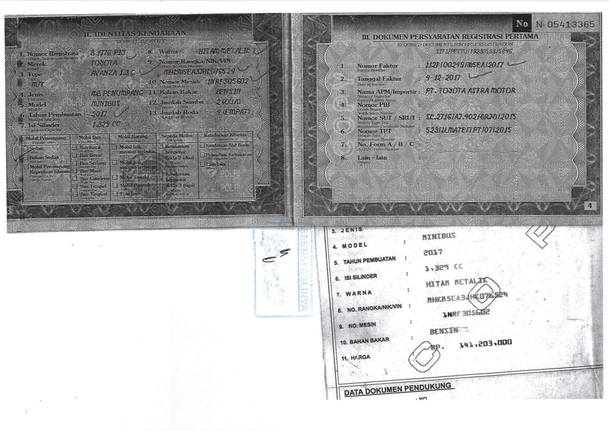 ADA PERBEDAAN NOPOL PADA FISIK DN 1439 ED PADA BPKB B 1776 PIY TIDAK DA PERUBAHAN NOPOL INDIKASI BBN GANTUNG / NOPOL PALSU // SEBELUM MELAKUKAN PENAWARAN UNIT PESERTA LELANG WAJIB MELAKUKAN PENGECEKAN UNIT DAN DOKUMEN TERLEBIH DAHULU // PIC LULU +62 856-5712-5589//UNIT DIKENAKAN BIAYA PPN 1.1% DARI HARGA TERBENTUK //