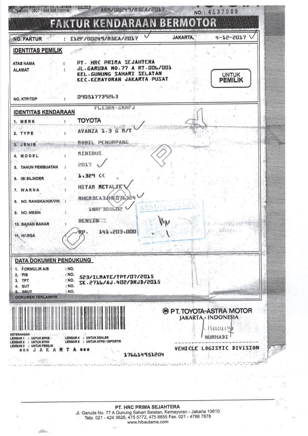 | No. Rangka | : | MHKM5EA3JHK076524 |