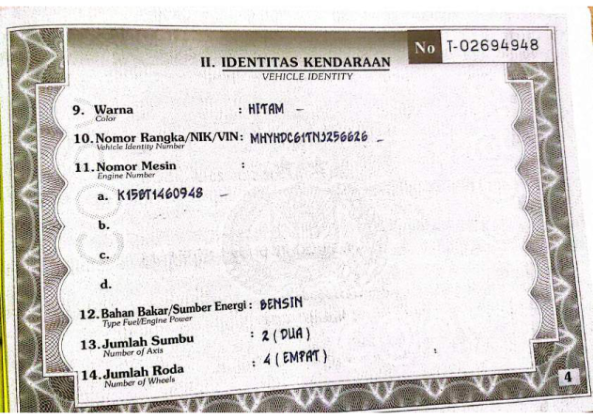 STNK | : | Tidak Ada |