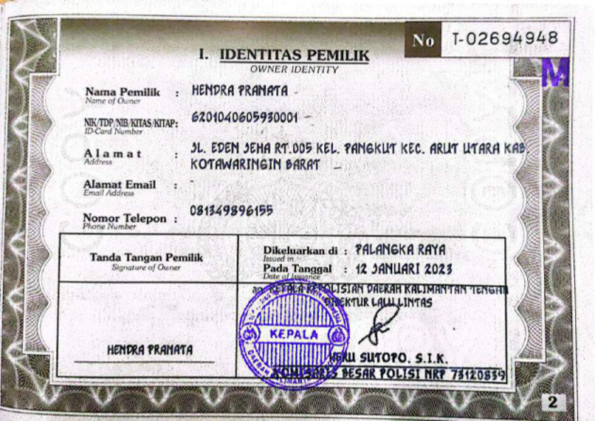 No. Polisi | : | KH 8537 GQ |