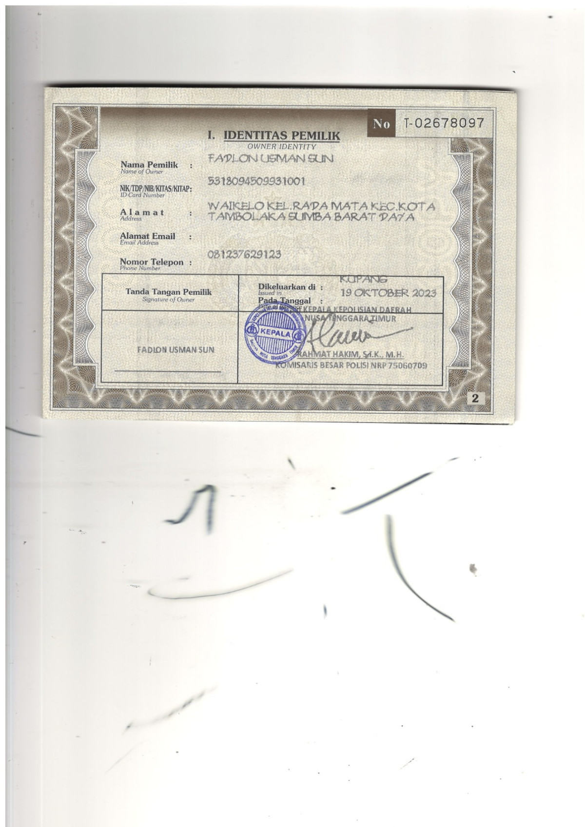 No. Polisi | : | ED 4644 CC |