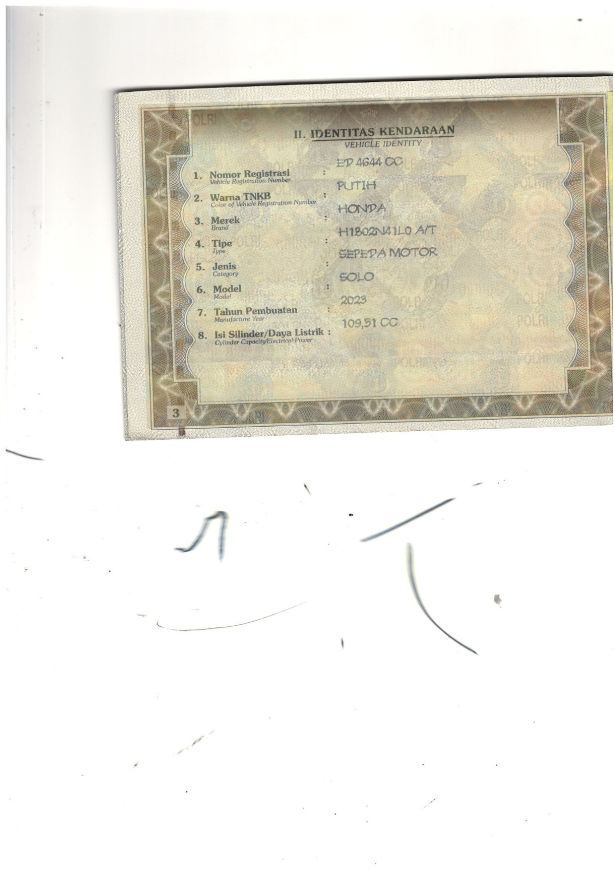 STNK | : | Tidak Ada |