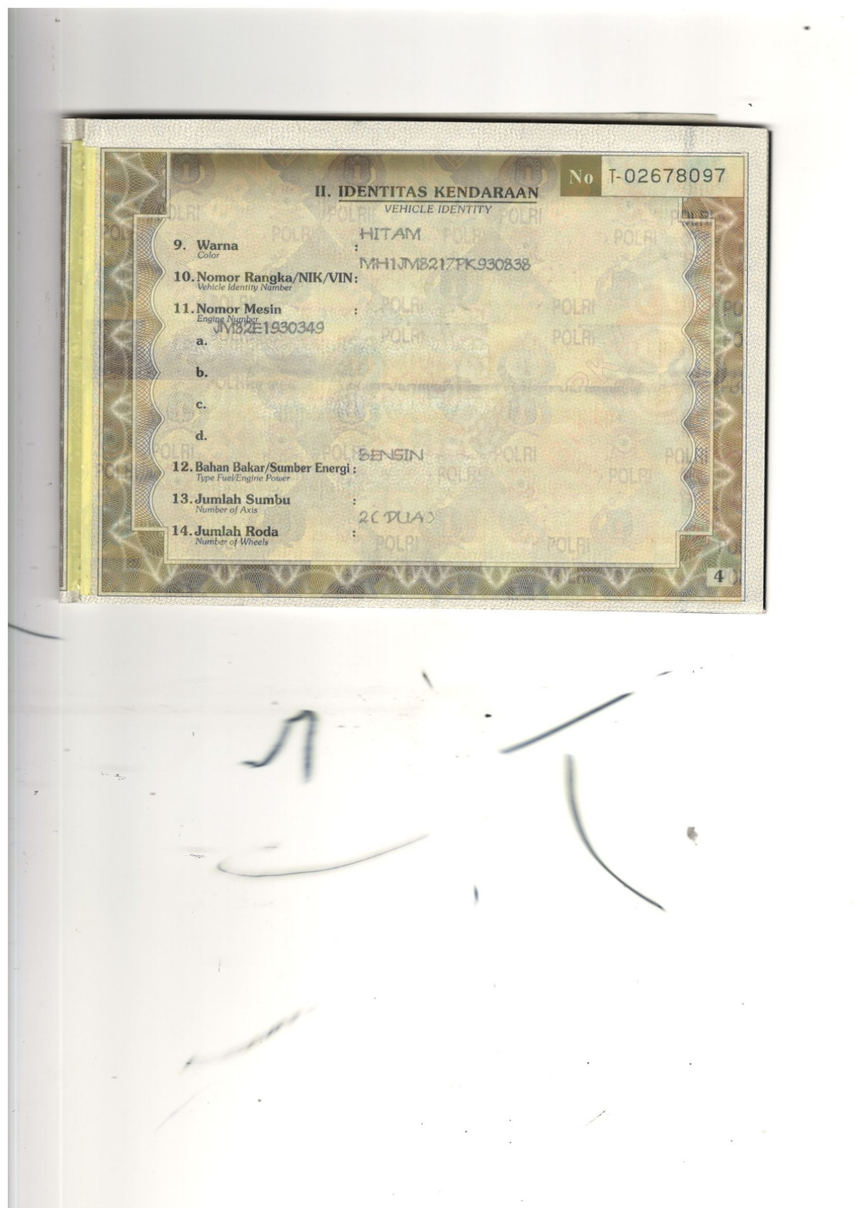 No. Rangka | : | MH1JM8217PK930838 |