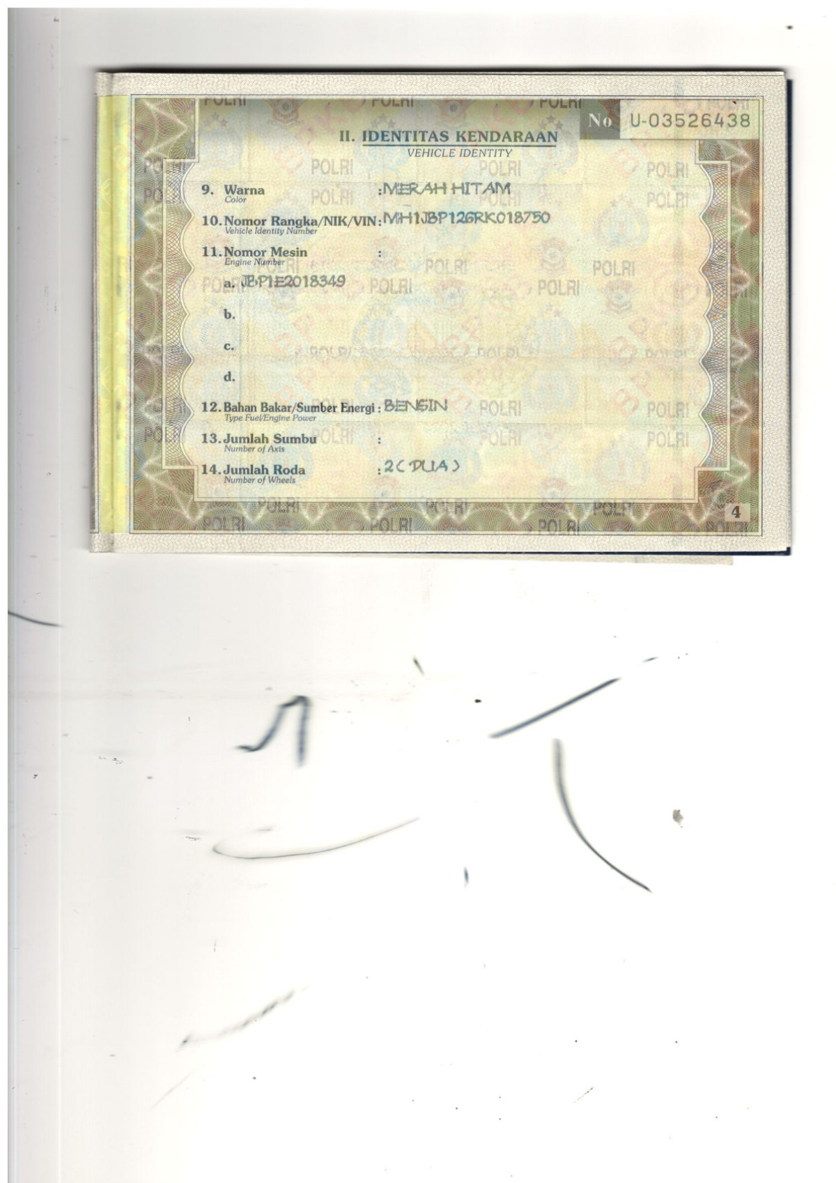 No. Mesin | : | JBP1E2018349 |