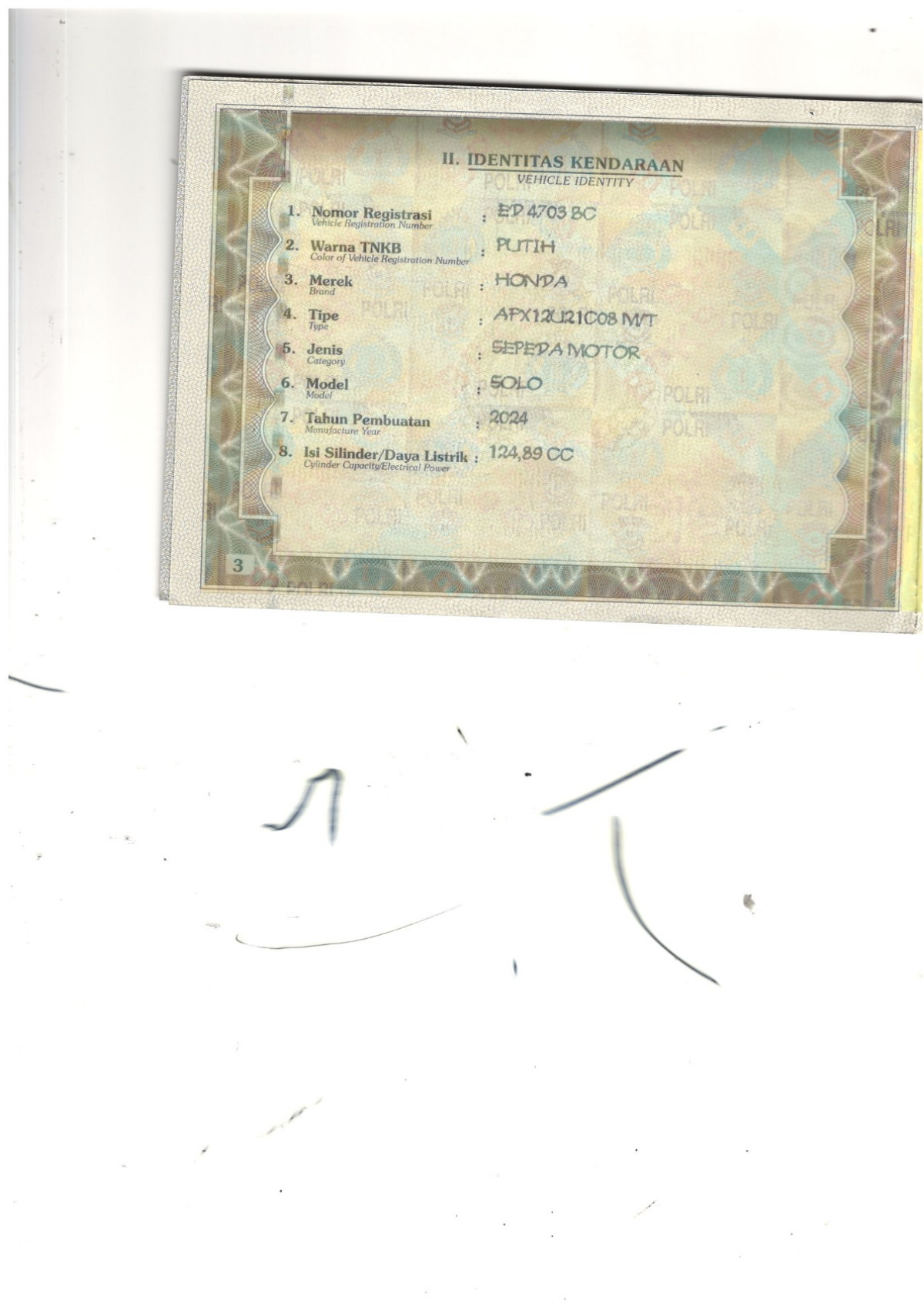 No. Polisi | : | ED 4703 BC |