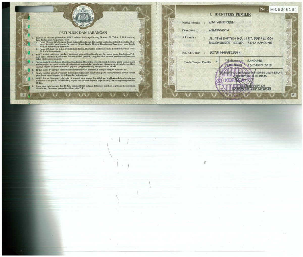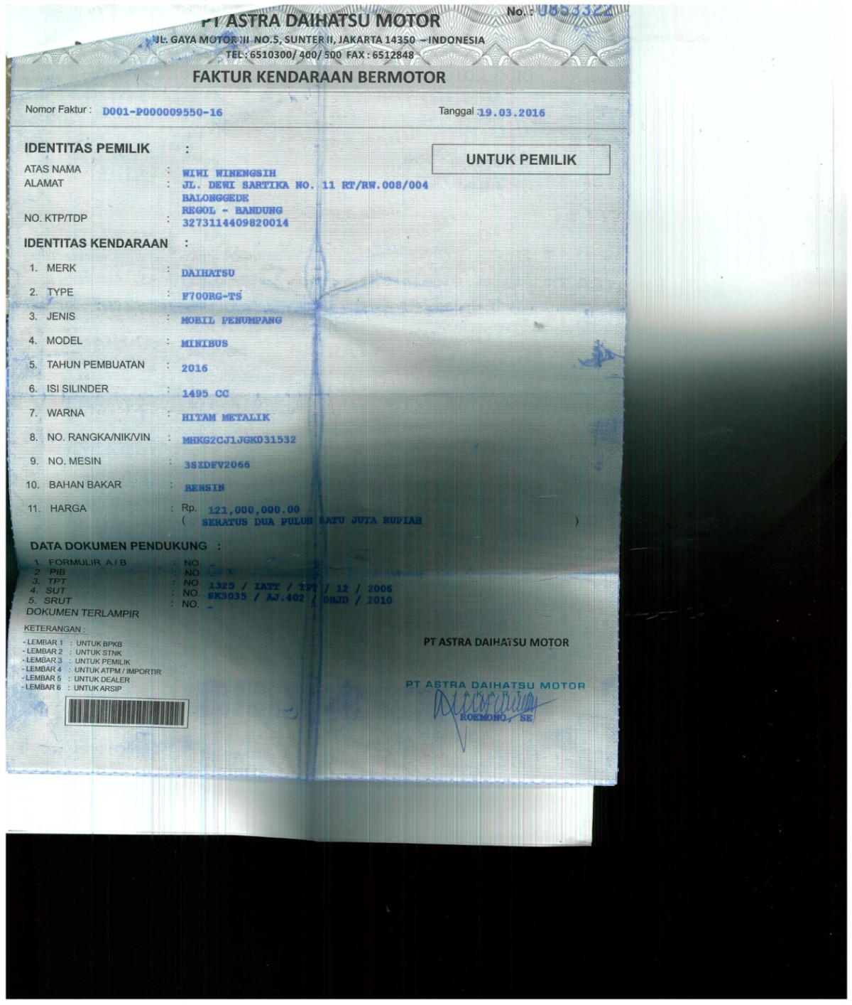 ADA PERBEDAAN NOPOL PADA FISIK D 1241 VBD SEDANGKAN PADA BPKB D 1193 AEC TIDAK ADA KET. RUBAH NOPOL INDIKASI BBN GANTUNG // SEBELUM MELAKUKAN PENAWARAN UNIT PESERTA LELANG WAJIB MELAKUKAN PENGECEKAN UNIT DAN DOKUMEN TERLEBIH DAHULU // PIC DENNY : 0852-9442-5362 // UNIT DIKENAKAN BIAYA PPN 1.1% DARI HARGA TERBENTUK //ADA PERBEDAAN TIPE PADA DOKUMEN BPKB DAN FISIK //PADA FISIK X ,DOKUMEN BPKB TS