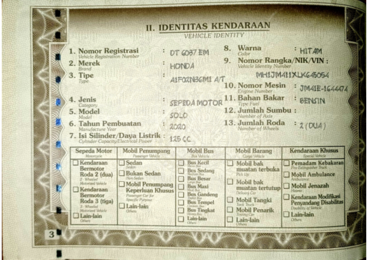 | No. Polisi | : | DT 6037 EM |