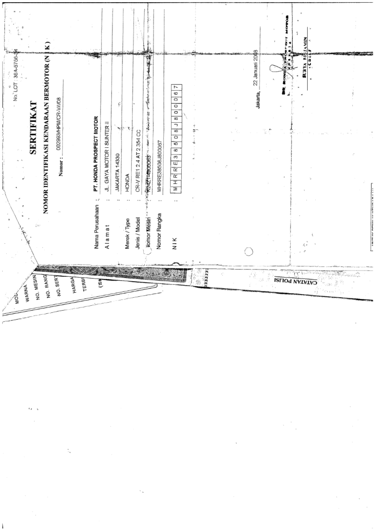 SEBELUM MELAKUKAN PENAWARAN UNIT PESERTA LELANG WAJIB MELAKUKAN PENGECEKAN UNIT DAN DOKUMEN TERLEBIH DAHULU // PIC JHONY : +62 813-7163-4690 // UNIT DIKENAKAN BIAYA PPN 1.1% DARI HARGA TERBENTUK //ADA PERBEDAAN NOPOL FISIK , BPKB DAN STNK//NOPOL FISIK (B 1045 SGL),NOPOL BPKB (B 8393 TS), DAN NOPOL STNK (B 1049 BLP)//INDIKASI BBN GANTUNG///FOTO NOKA FISIK TIDAK TERBACA//