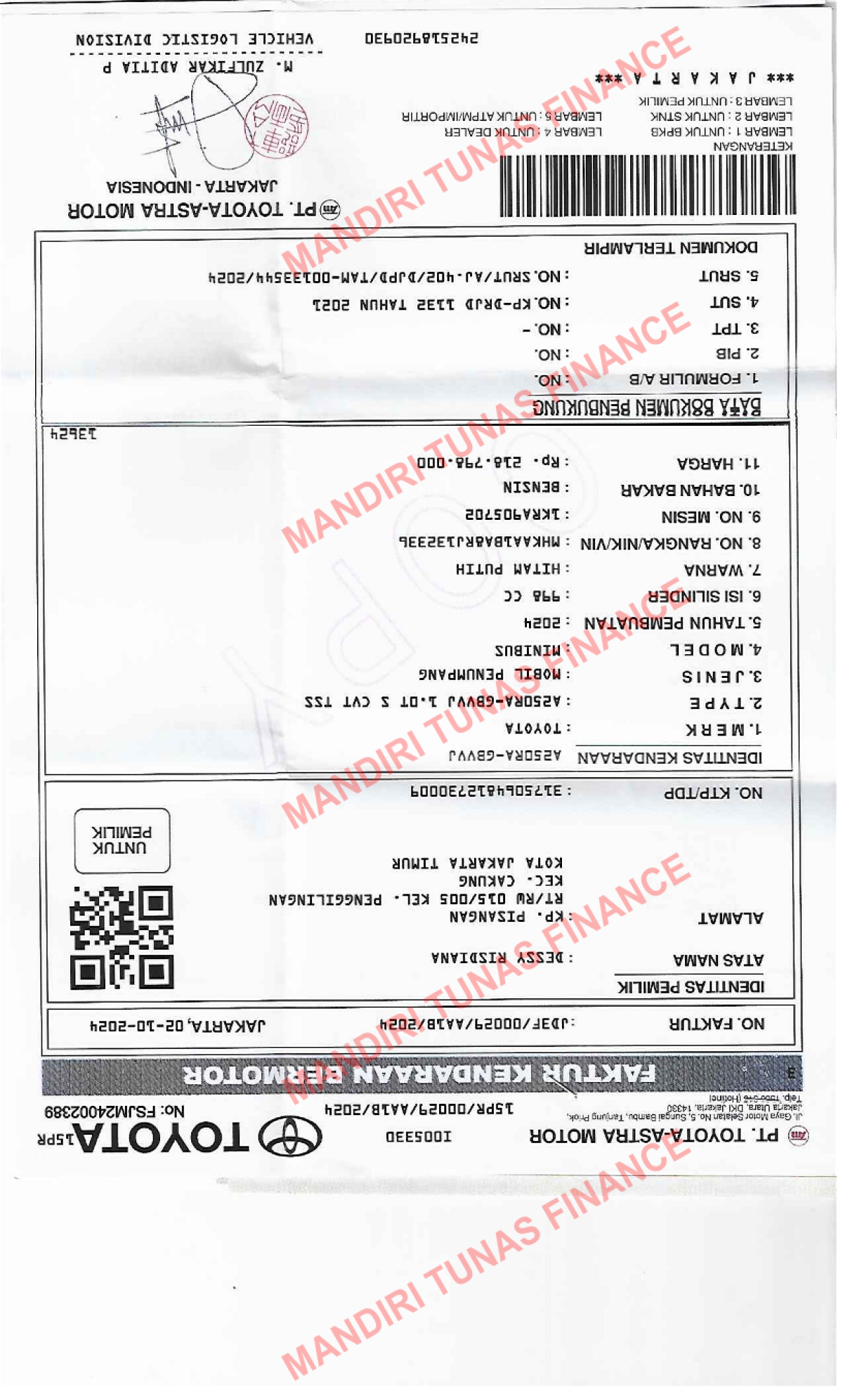 SEBELUM MELAKUKAN PENAWARAN UNIT PESERTA LELANG WAJIB MELAKUKAN PENGECEKAN UNIT DAN DOKUMEN TERLEBIH DAHULU // UNIT DIKENAKAN BIAYA PPN 1.1% DARI HARGA TERBENTUK // UNIT DIKENAKAN BIAYA ROYA FIDUSIA 100.000 // WANDA :62 858-6767-0166