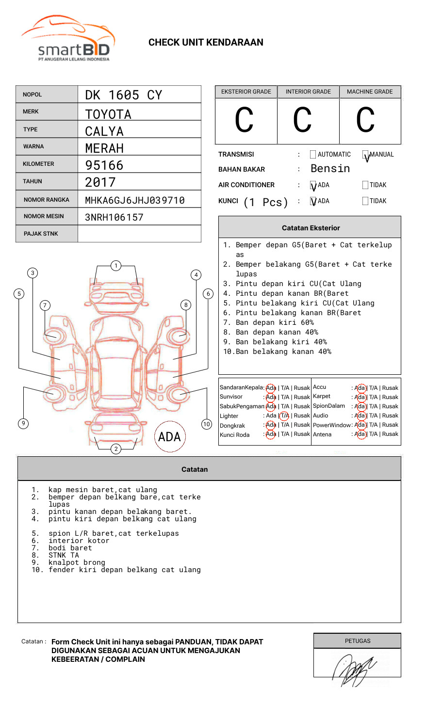 SEBELUM MELAKUKAN PENAWARAN UNIT PESERTA LELANG WAJIB MELAKUKAN PENGECEKAN UNIT DAN DOKUMEN TERLEBIH DAHULU // PIC JEMY : 0852-5833-5777 // INSPEKSI AGUNG : 0852-3671-4592 // UNIT DIKENAKAN BIAYA PPN 1.1% DARI HARGA TERBENTUK //