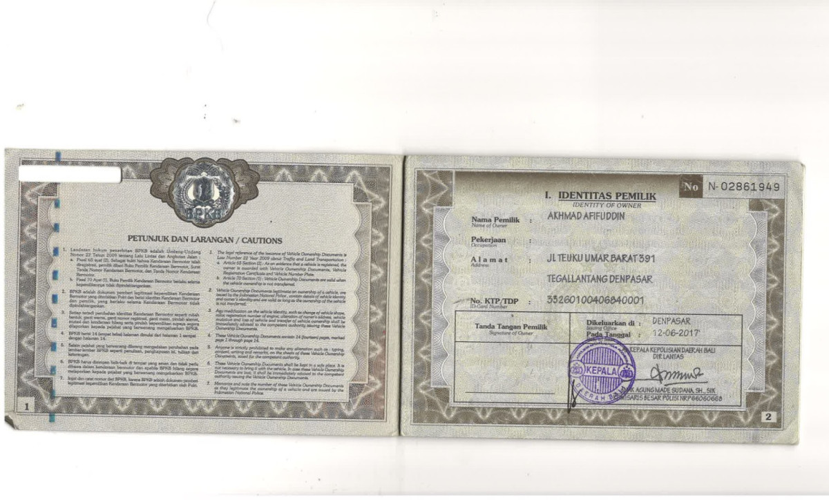 No. Polisi | : | DK 1605 CY |