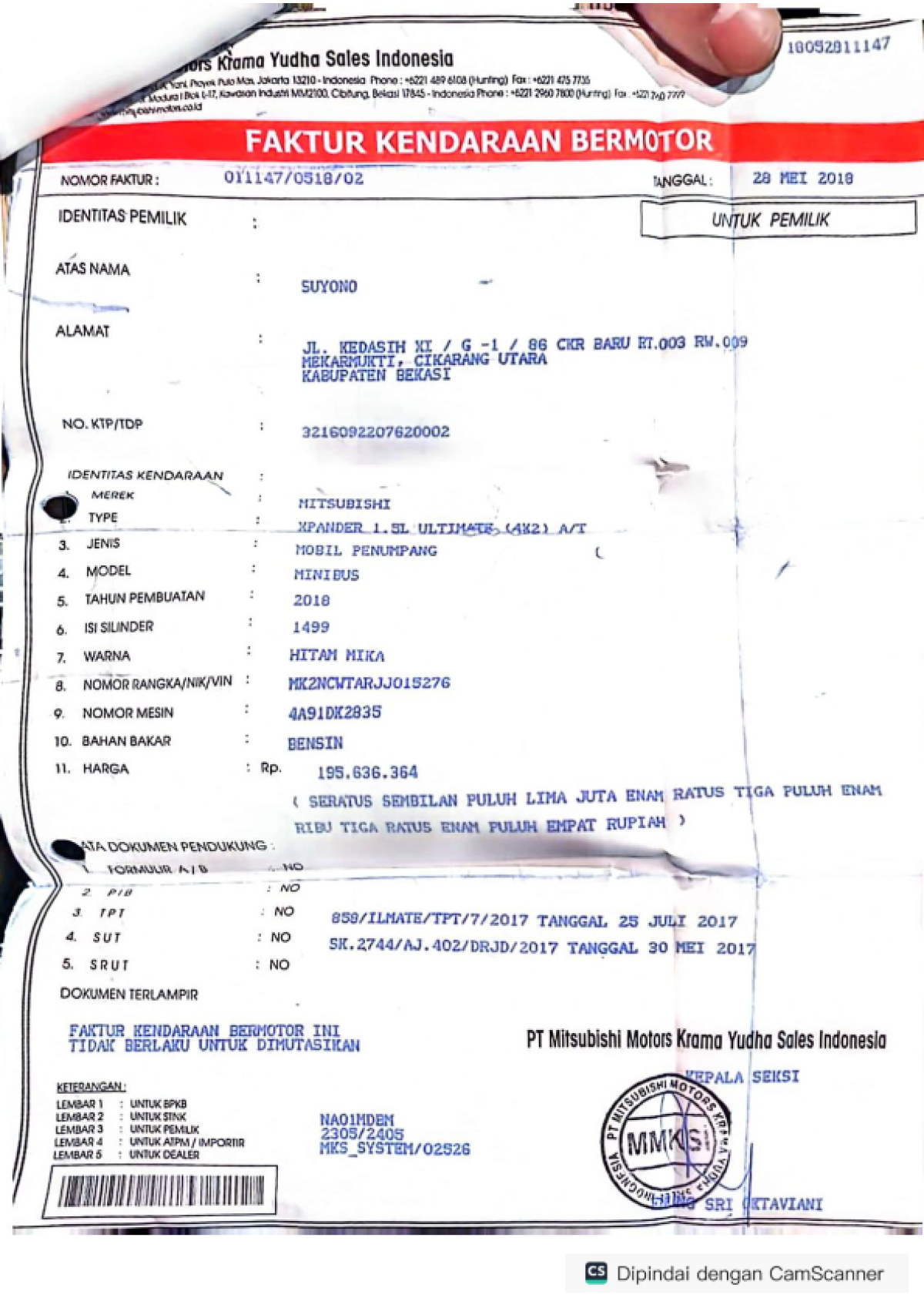 SEBELUM MELAKUKAN PENAWARAN UNIT PESERTA LELANG WAJIB MELAKUKAN PENGECEKAN UNIT DAN DOKUMEN TERLEBIH DAHULU // PIC WAHYU : 082124062748// UNIT DIKENAKAN BIAYA PPN 1.1% DARI HARGA TERBENTUK // TERDAPAT PERBEDAAN NOPOL FISIK (AD 1251 ZS) DENGAN NOPOL DOKUMEN BPKB (B 1459 FIG)// INDIKASI NOPOL PALSU/BBN GANTUNG// KET E-SAMSAT "BLOKIR KEPOLISIAN & TELAH LEPAS KEPEMILIKKAN"