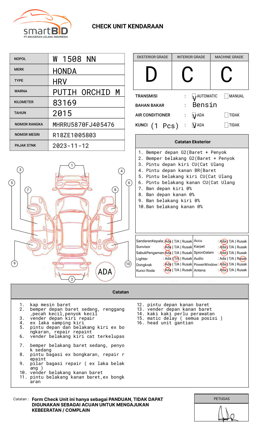 SEBELUM MELAKUKAN PENAWARAN UNIT PESERTA LELANG WAJIB MELAKUKAN PENGECEKAN UNIT DAN DOKUMEN TERLEBIH DAHULU // PEMENANG LELANG DIKENAKAN BIAYA PPN 1.1% DARI HARGA TERBENTUK // PIC AWAL +62 895-3231-57272 / ANDRI 085136886212