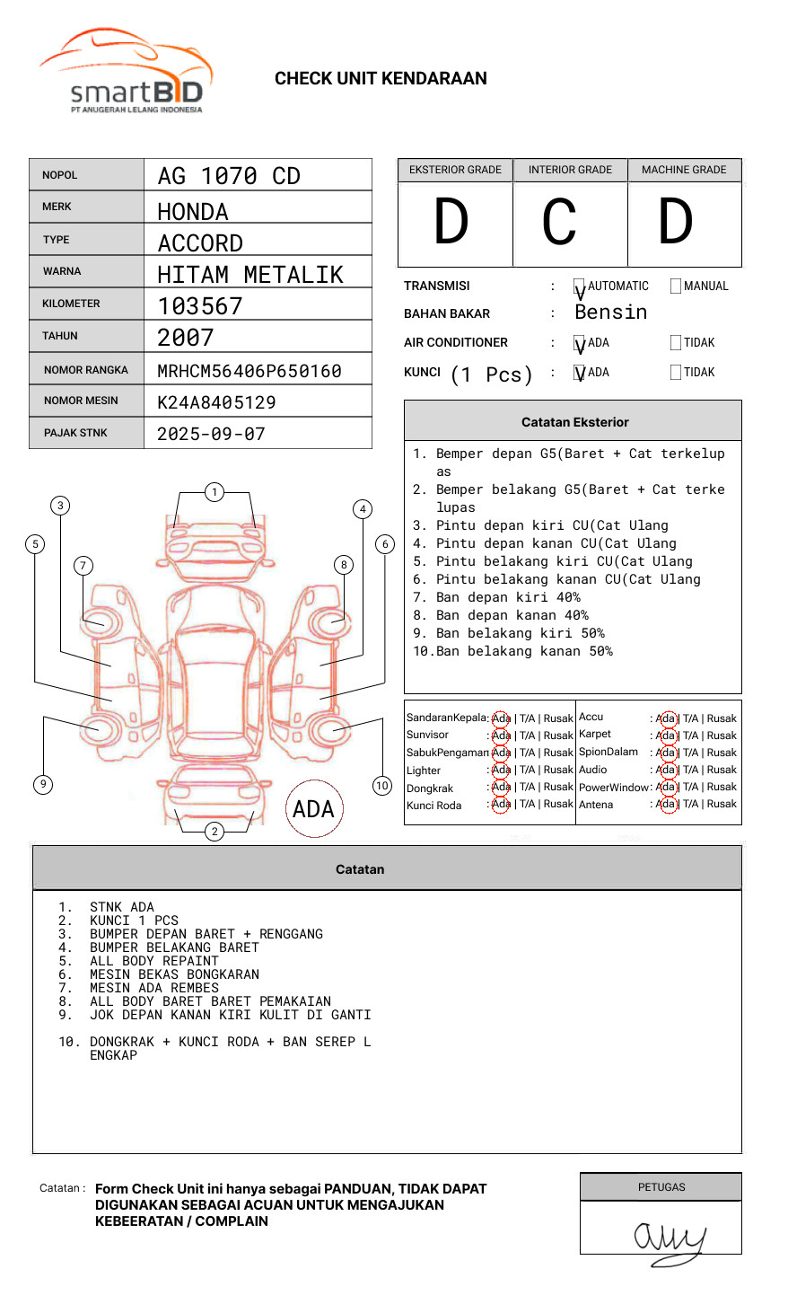 SEBELUM MELAKUKAN PENAWARAN UNIT PESERTA LELANG WAJIB MELAKUKAN PENGECEKAN UNIT DAN DOKUMEN TERLEBIH DAHULU // PIC ARDIAZ 082142028080 // UNIT DIKENAKAN BIAYA PPN 1.1% DARI HARGA TERBENTUK //