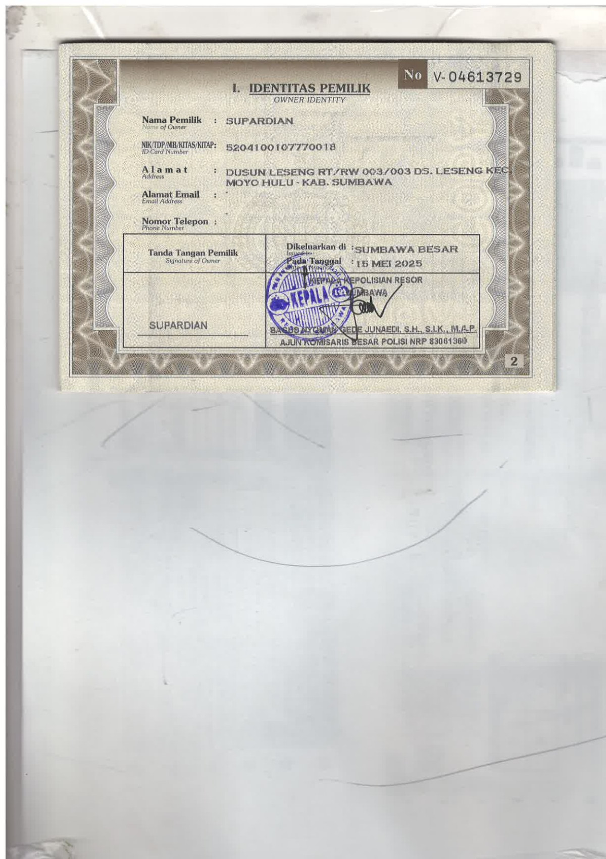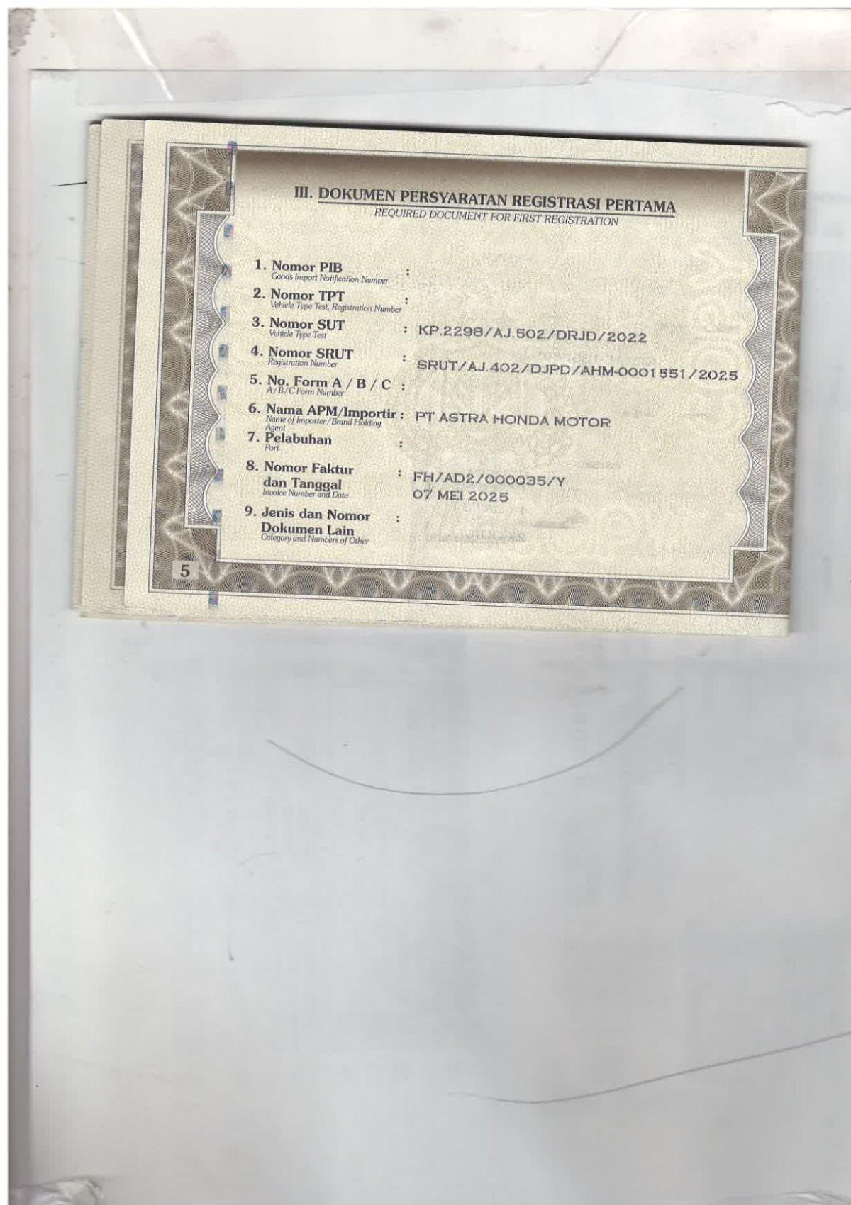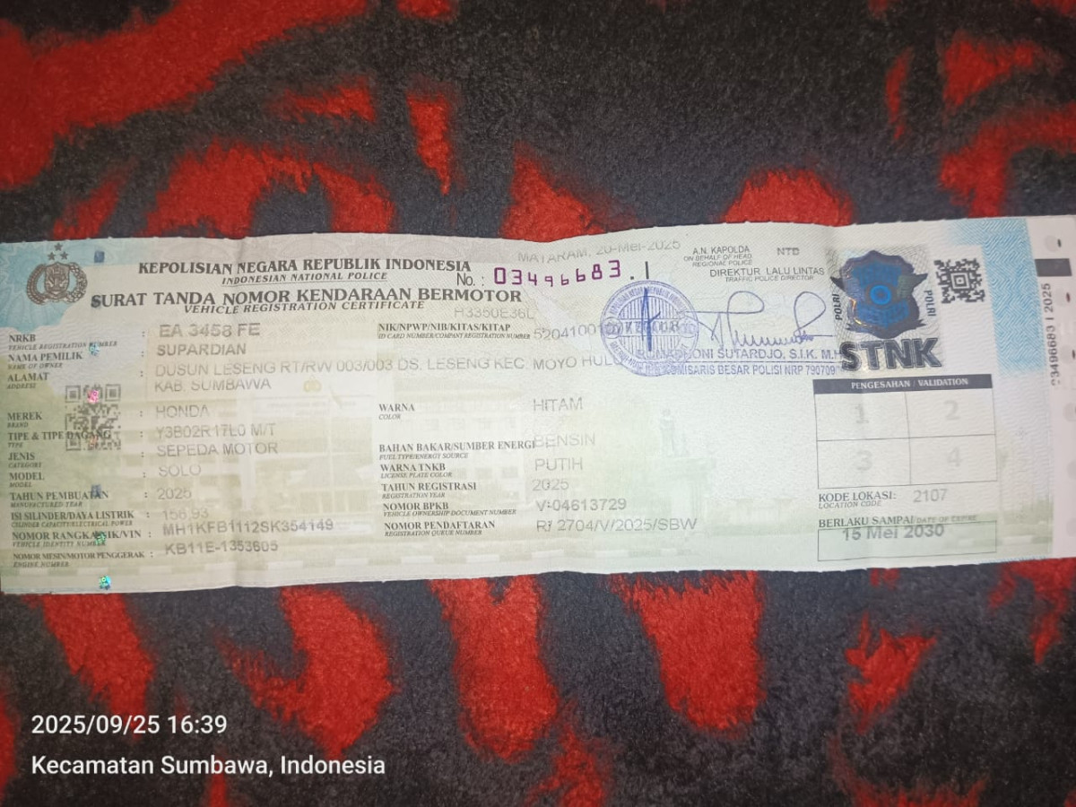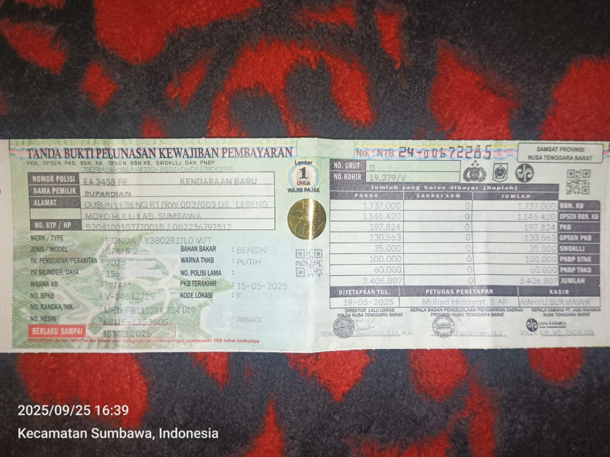 UNIT TIDAK DILAKUKAN PENGECEKAN OLEH TIM SMARTBID// SEBELUM MELAKUKAN PENAWARAN HARAP CEK KONDISI UNIT DAN DOKUMEN TERLEBIH DAHULU// WAJIB MENGHUBUNGI PIC DAN DATANG KE LOKASI UNTUK PENGECEKAN UNIT// UNIT DILELANG APA ADANYA PERMASALAHAN YANG TIMBUL DILUAR TANGGUNG JAWAB SMARTBID// PENGAMBILAN UNIT SLIDE H+2 DARI PELUNASAN // JIKA INGIN MENGAMBIL UNIT HARAP UNTUK KONFIRMASI DAHULU KE SMARTBID // JIKA YANG MENGAMBIL BIDDER HARAP MEMBAWA KTP ASLI // JIKA PENGAMBILAN DIWAKILKAN WAJIB MEMBAWA SURAT KUASA ASLI // UNIT DIKENAKAN BIAYA PPN 1,1% DARI HARGA TERBENTUK // LOKASI UNIT HUBUNGI CS PUSAT 081188089292 // ADA BEKAS TIPEX PADA NOKA DI BPKB