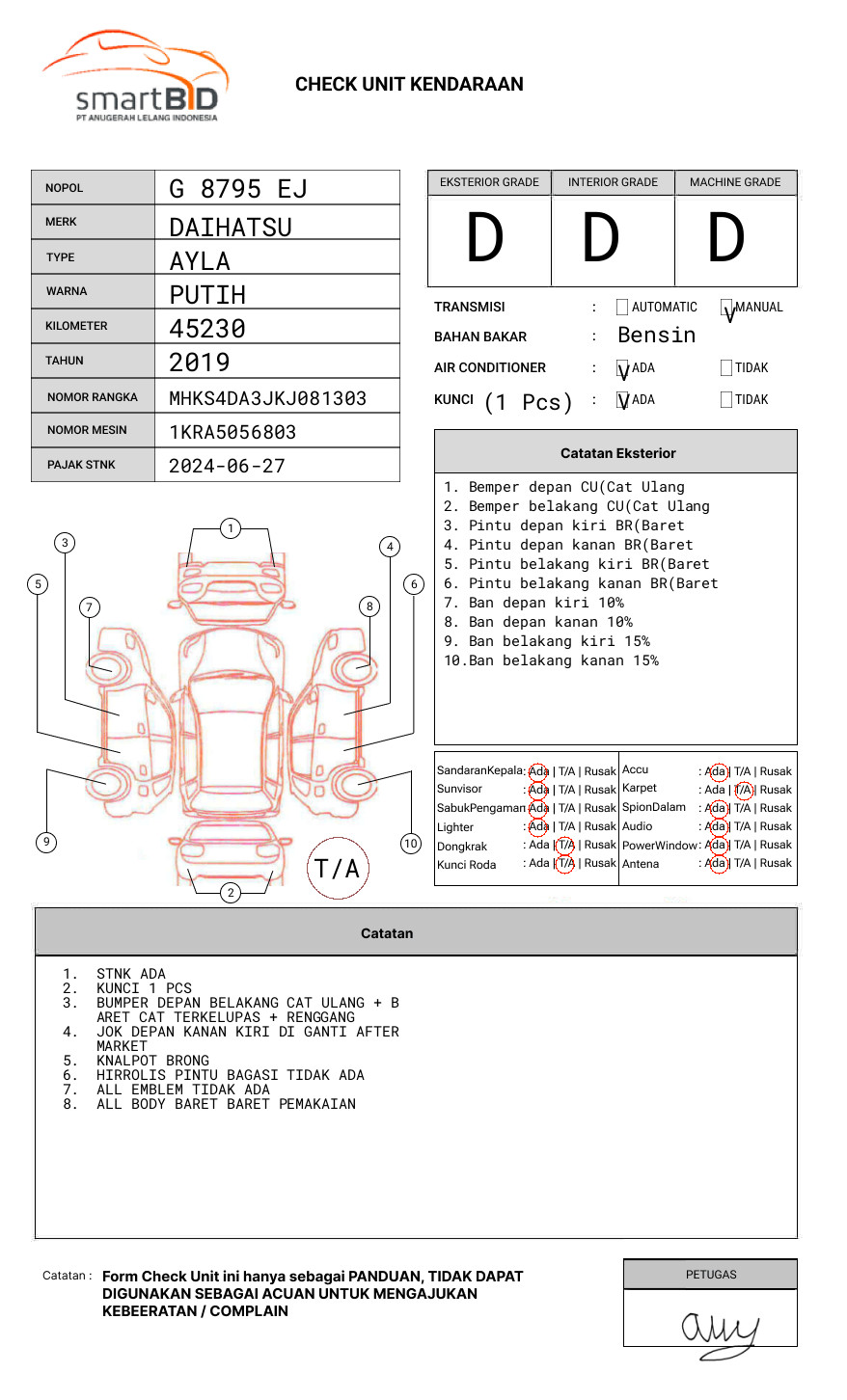 NOPOL FISIK T/A // SEBELUM MELAKUKAN PENAWARAN UNIT PESERTA LELANG WAJIB MELAKUKAN PENGECEKAN UNIT DAN DOKUMEN TERLEBIH DAHULU // PIC ARDIAZ 082142028080 // UNIT DIKENAKAN BIAYA PPN 1.1% DARI HARGA TERBENTUK //