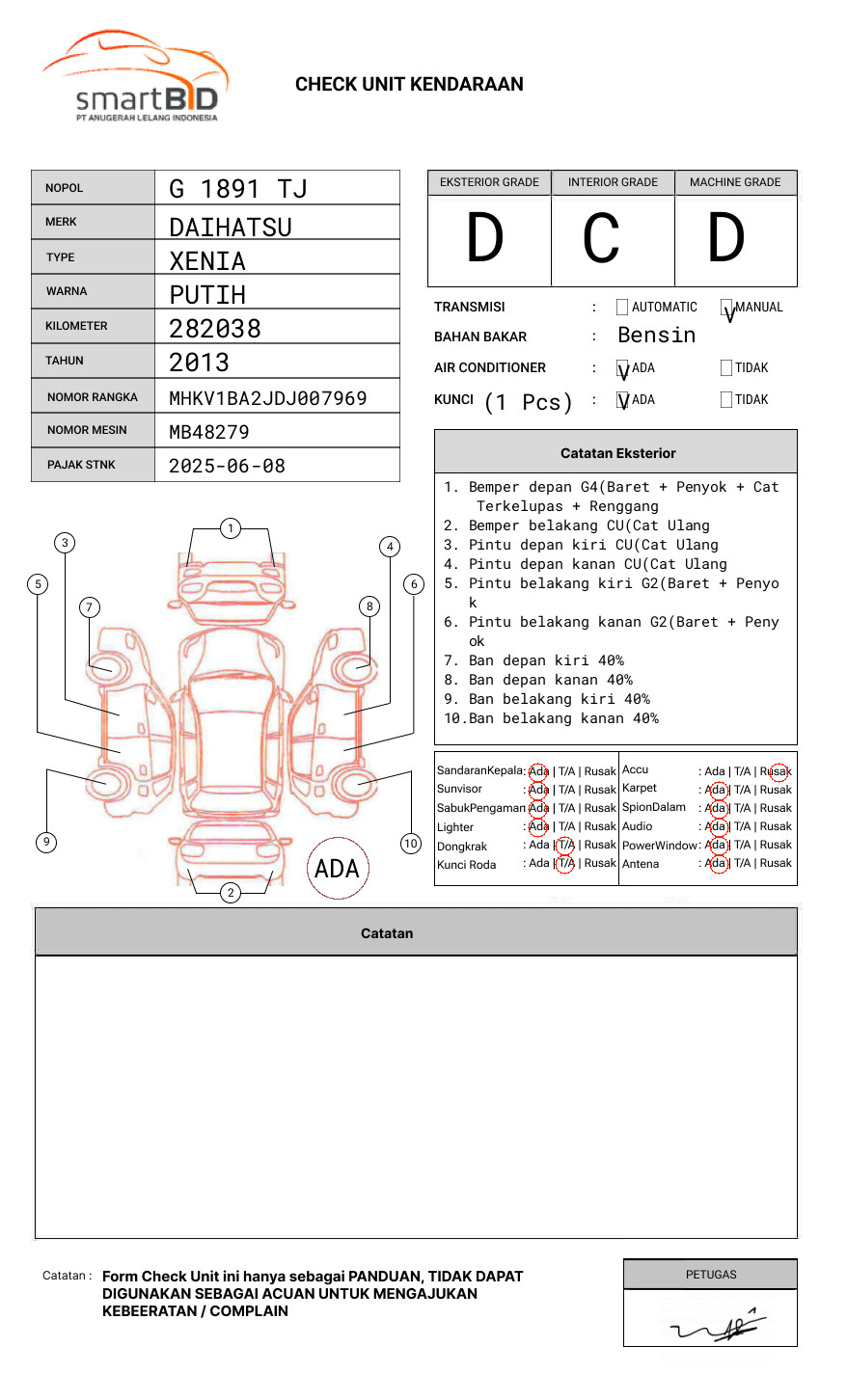 SEBELUM MELAKUKAN PENAWARAN UNIT PESERTA LELANG WAJIB MELAKUKAN PENGECEKAN UNIT DAN DOKUMEN TERLEBIH DAHULU // PIC ERVAN 081353402514 // UNIT DIKENAKAN BIAYA PPN 1.1% DARI HARGA TERBENTUK //