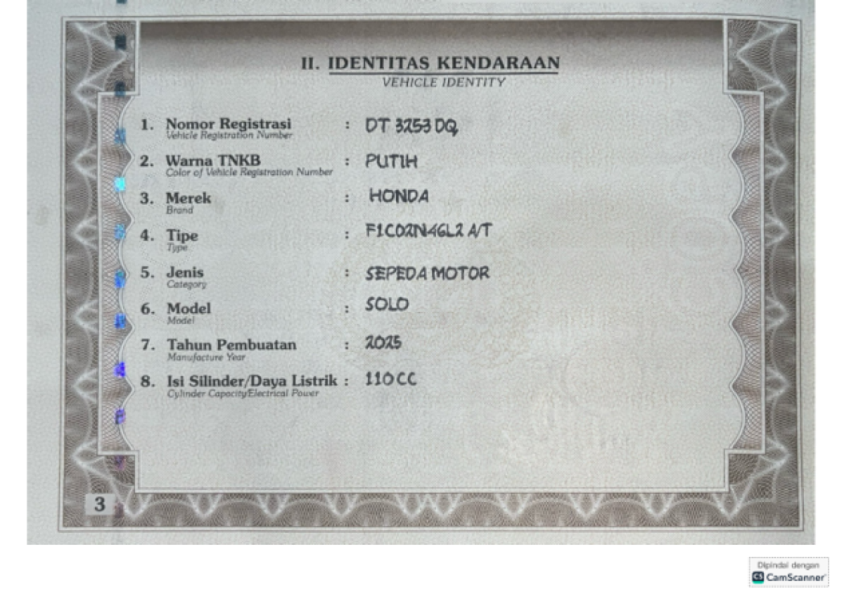 | No. Polisi | : | DT 3253 DQ |