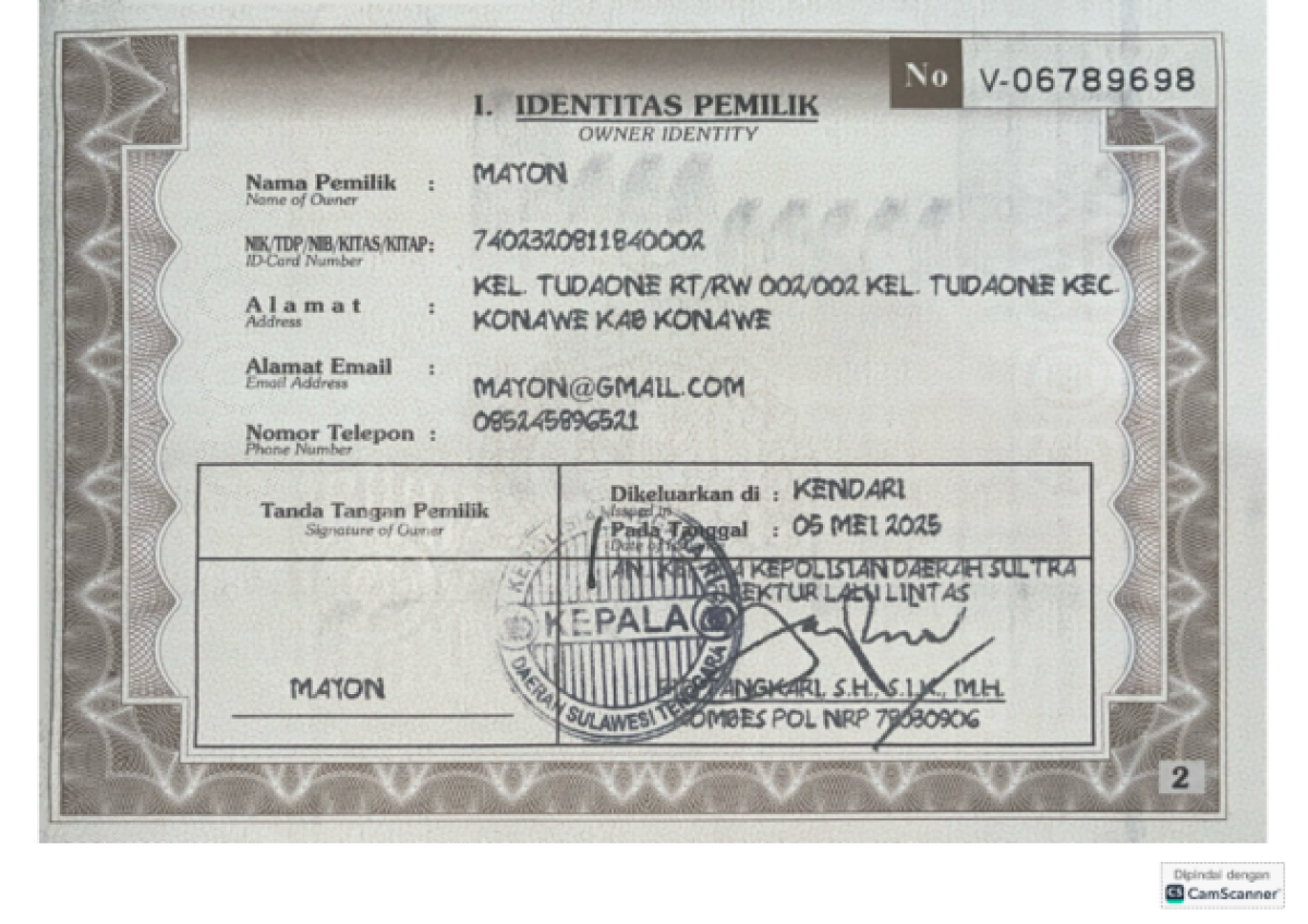 | STNK | : | Ada |