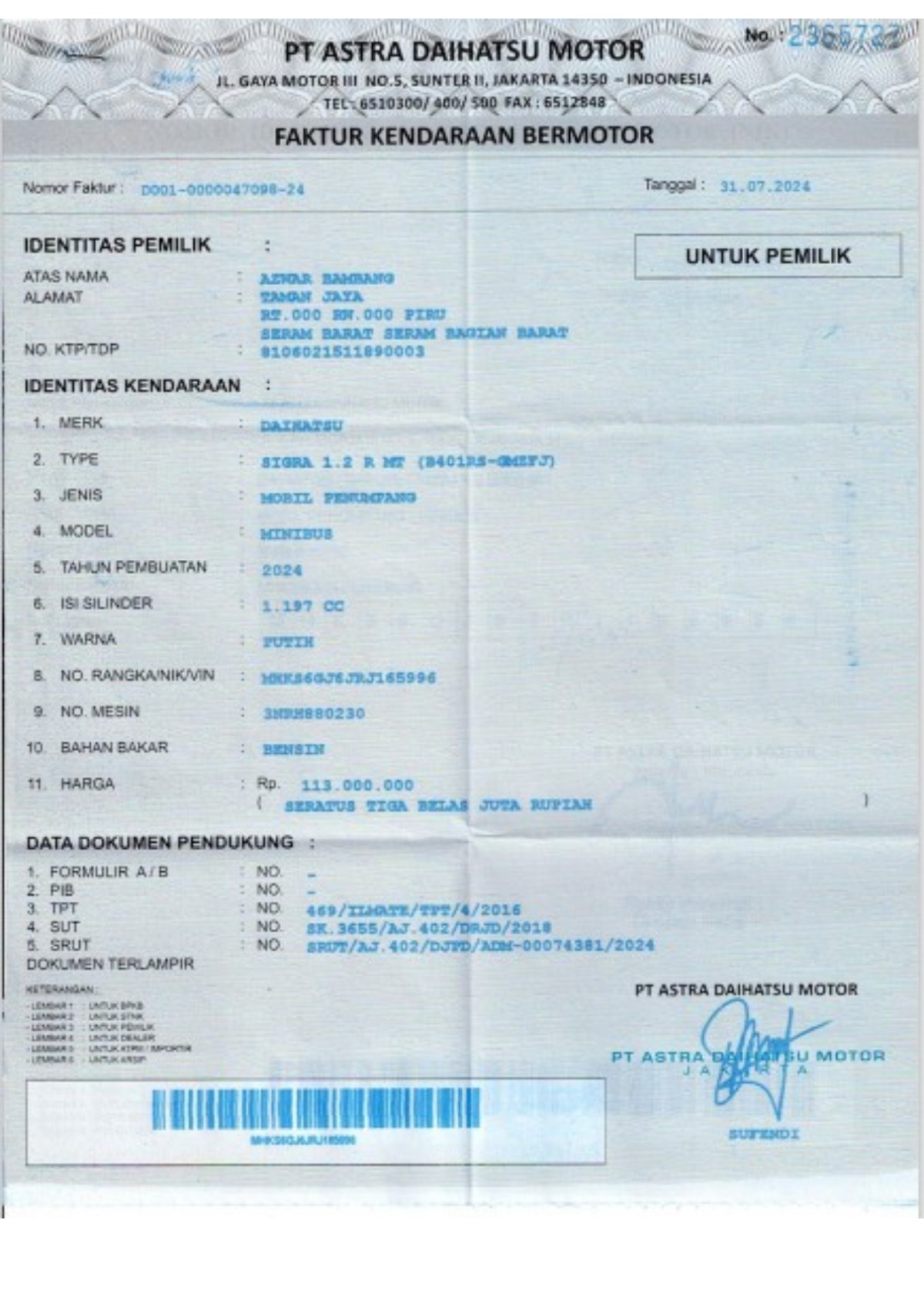 SEBELUM MELAKUKAN PENAWARAN UNIT PESERTA LELANG WAJIB MELAKUKAN PENGECEKAN UNIT DAN DOKUMEN TERLEBIH DAHULU // PIC KEVIN+62 813-5414-9141 // UNIT DIKENAKAN BIAYA PPN 1.1% DARI HARGA TERBENTUK // ADA BIAYA ROYA FIDUSIA 100.000