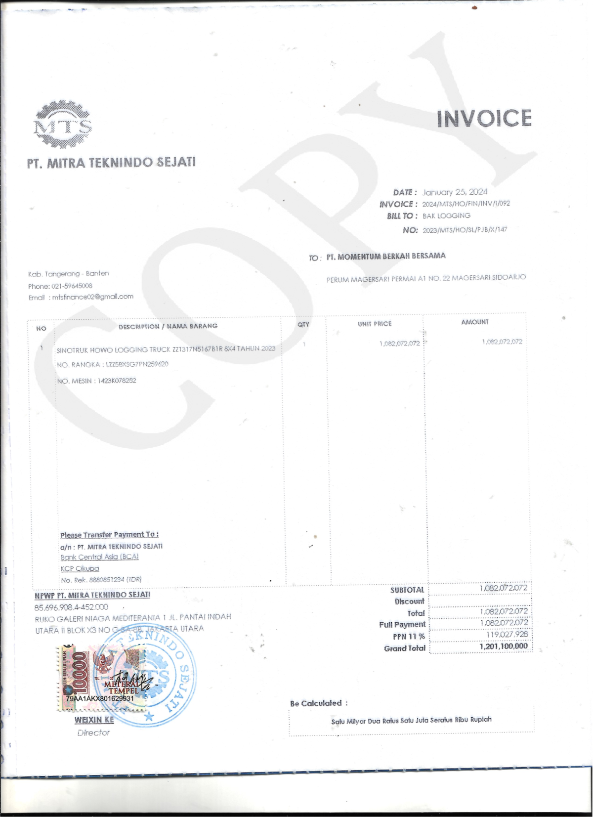 Harga dasar lot ini diatas atau sama dengan Rp500.000.000, - dikenakan minimal deposit Rp25.000.000 // Batas Pembayaran: 5 hari setelah invoice rilis