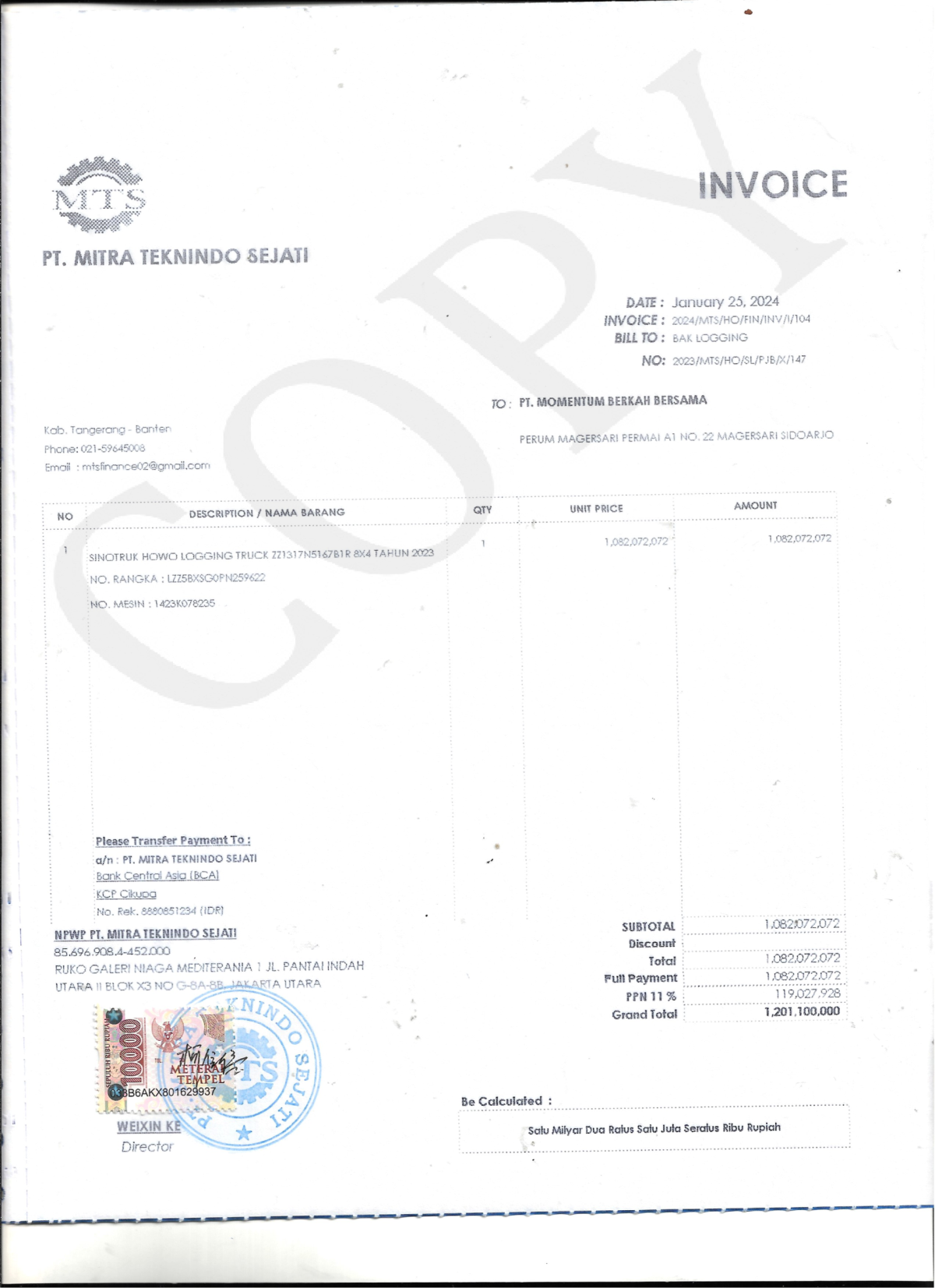 Harga dasar lot ini diatas atau sama dengan Rp500.000.000, - dikenakan minimal deposit Rp25.000.000 // Batas Pembayaran: 5 hari setelah invoice rilis