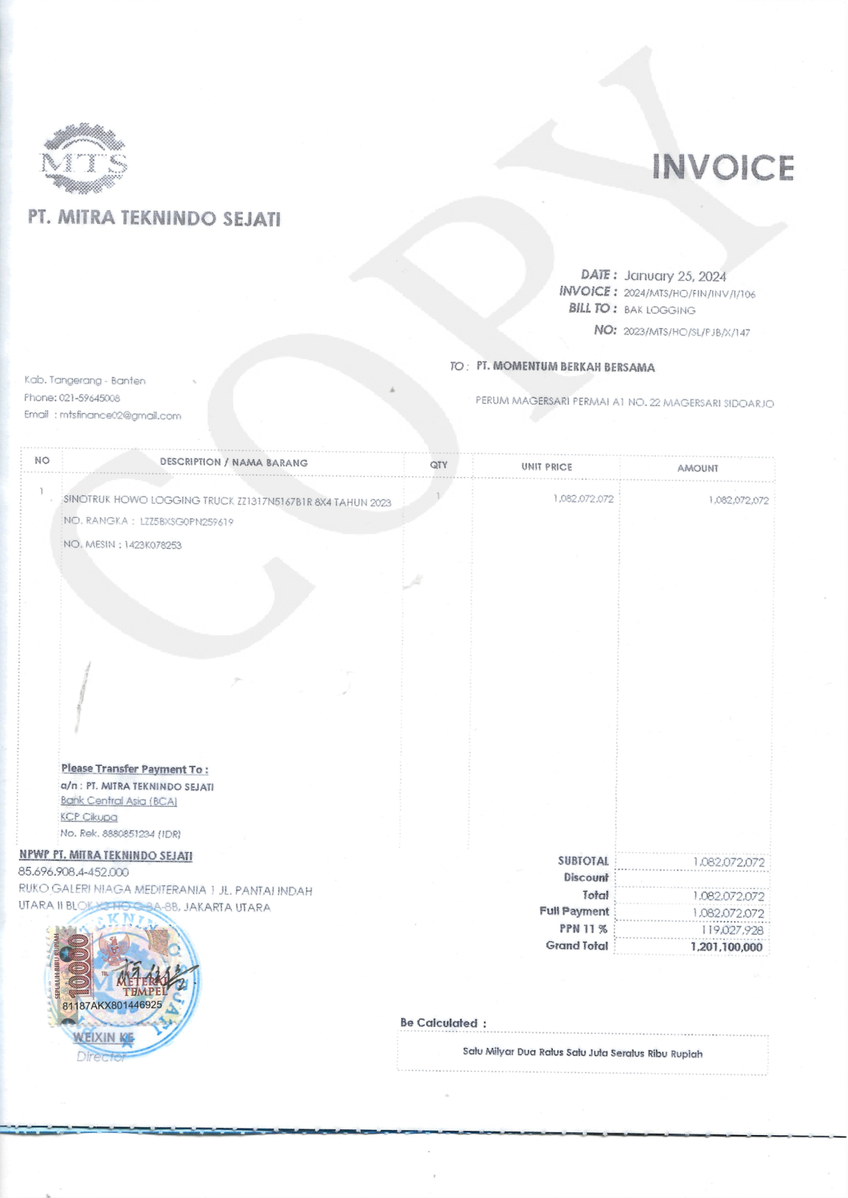 Harga dasar lot ini diatas atau sama dengan Rp500.000.000, - dikenakan minimal deposit Rp25.000.000 // Batas Pembayaran: 5 hari setelah invoice rilis
