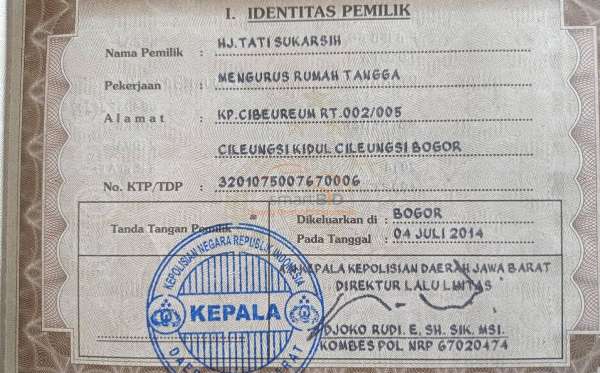 No. Polisi | : | F 8158 GO |