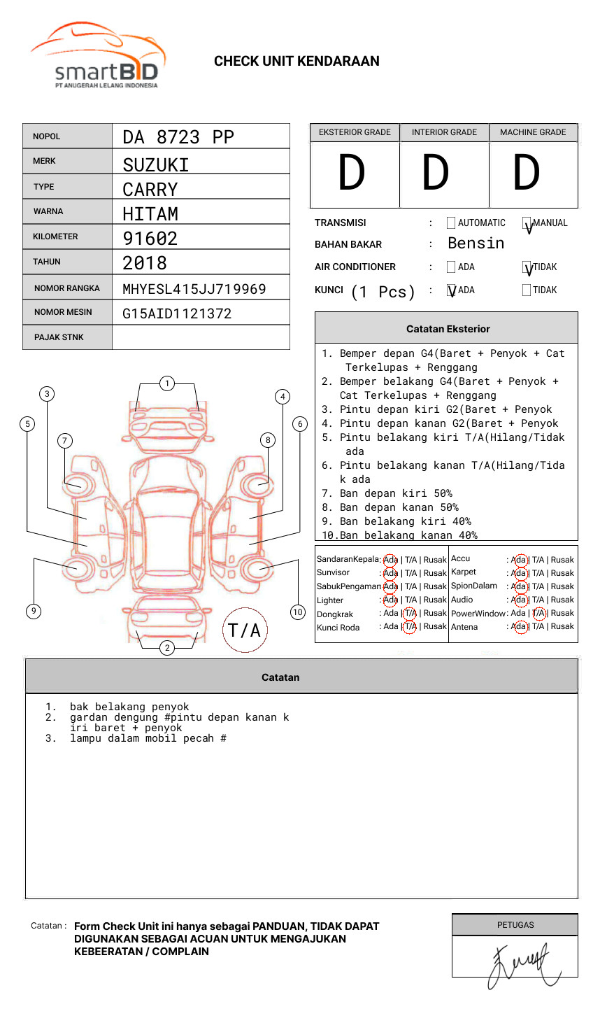 SEBELUM MELAKUKAN PENAWARAN UNIT PESERTA LELANG WAJIB MELAKUKAN PENGECEKAN UNIT DAN DOKUMEN TERLEBIH DAHULU // PIC FELIX +62 858-2222-4863 // UNIT DIKENAKAN BIAYA PPN 1.1% DARI HARGA TERBENTUK // UNIT DIKENAKAN BIAYA ROYA FIDUSIA 100.000