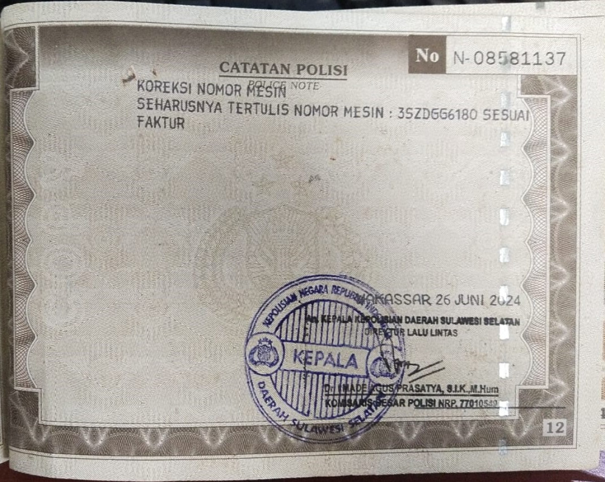 No. Polisi | : | DD 1518 SN |