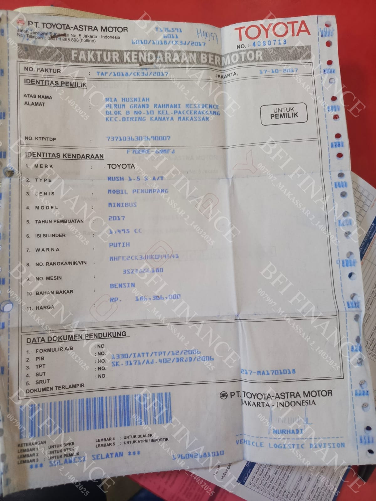 No. Rangka | : | MHFE2CK3JHK044641 |