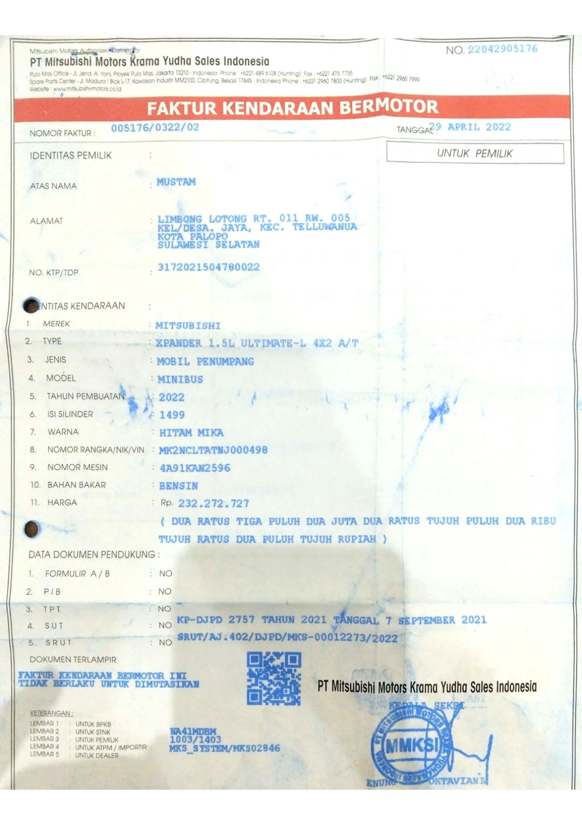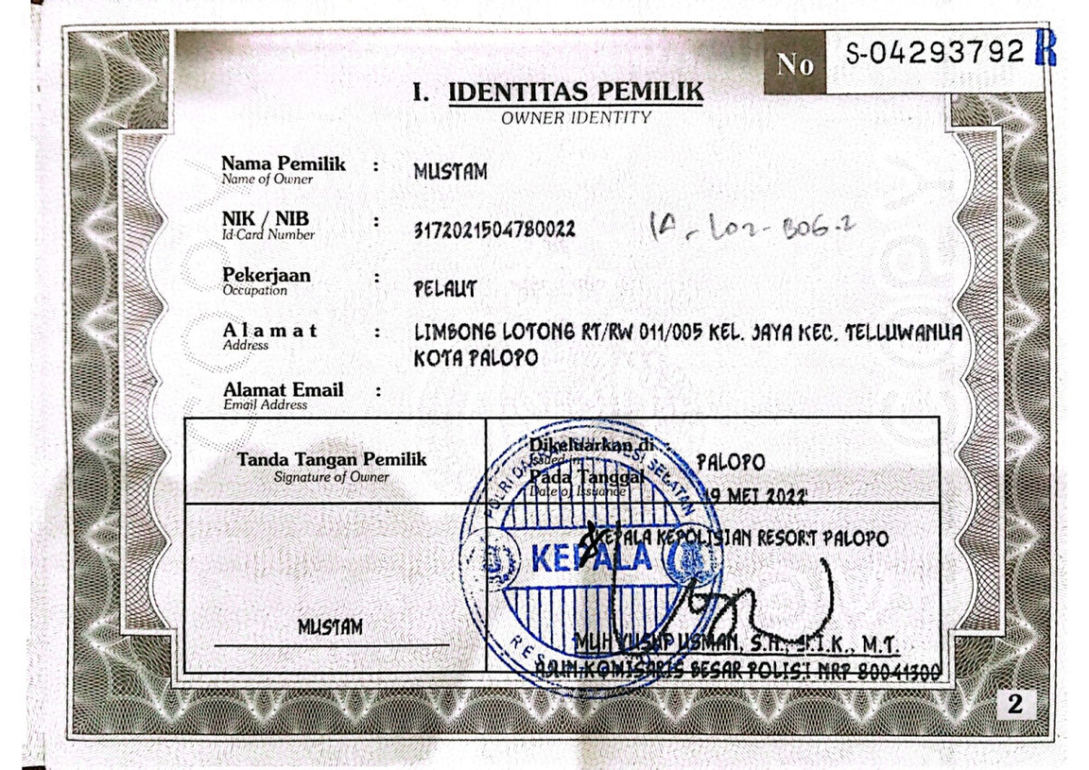 No. Polisi | : | DP 1029 TE |