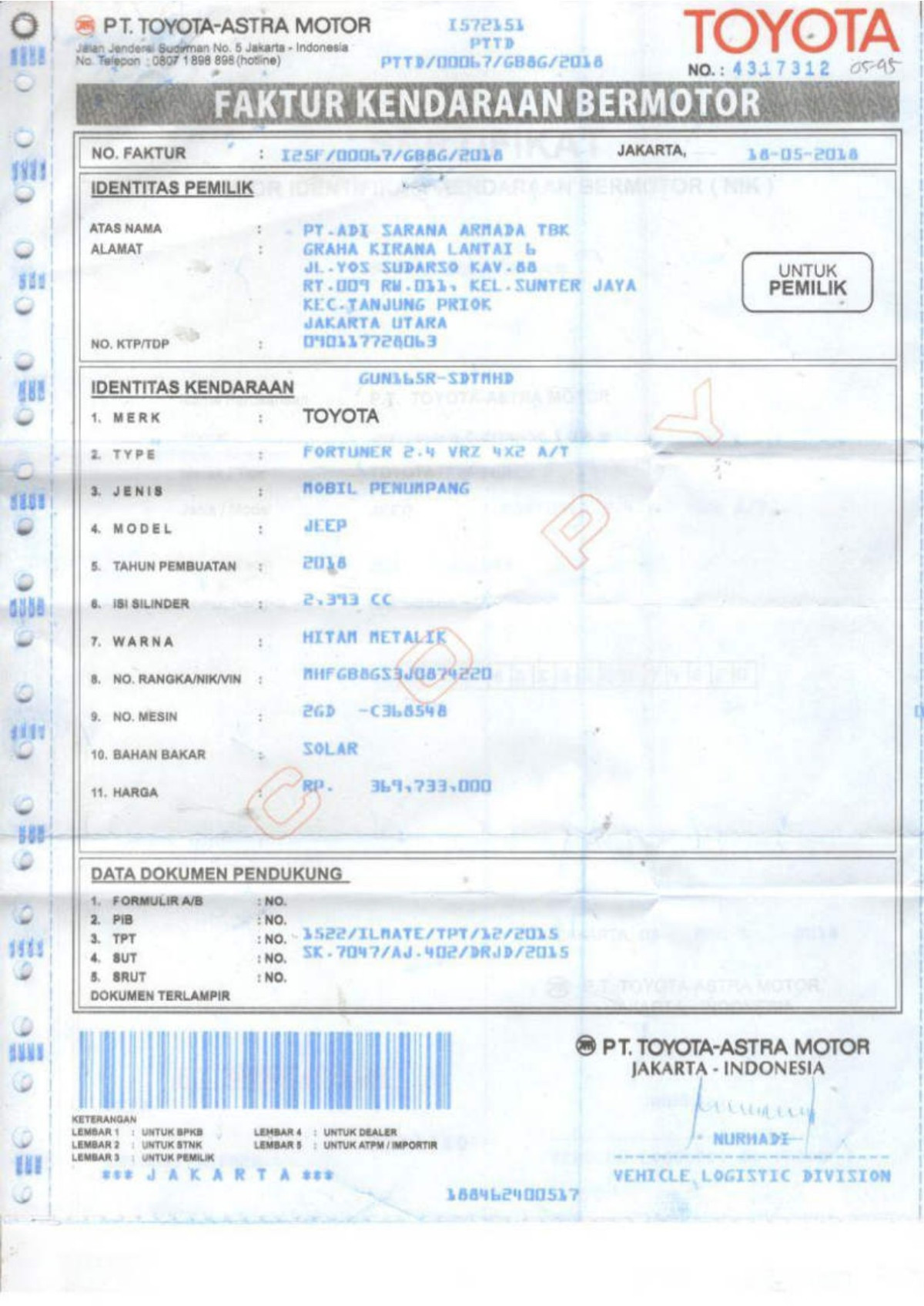 No. Rangka | : | MHFGB8GS3J0874220 |