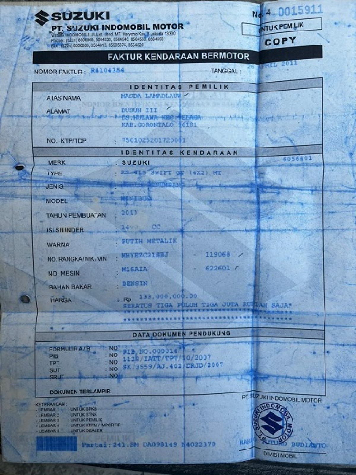 STNK | : | Tidak Ada |