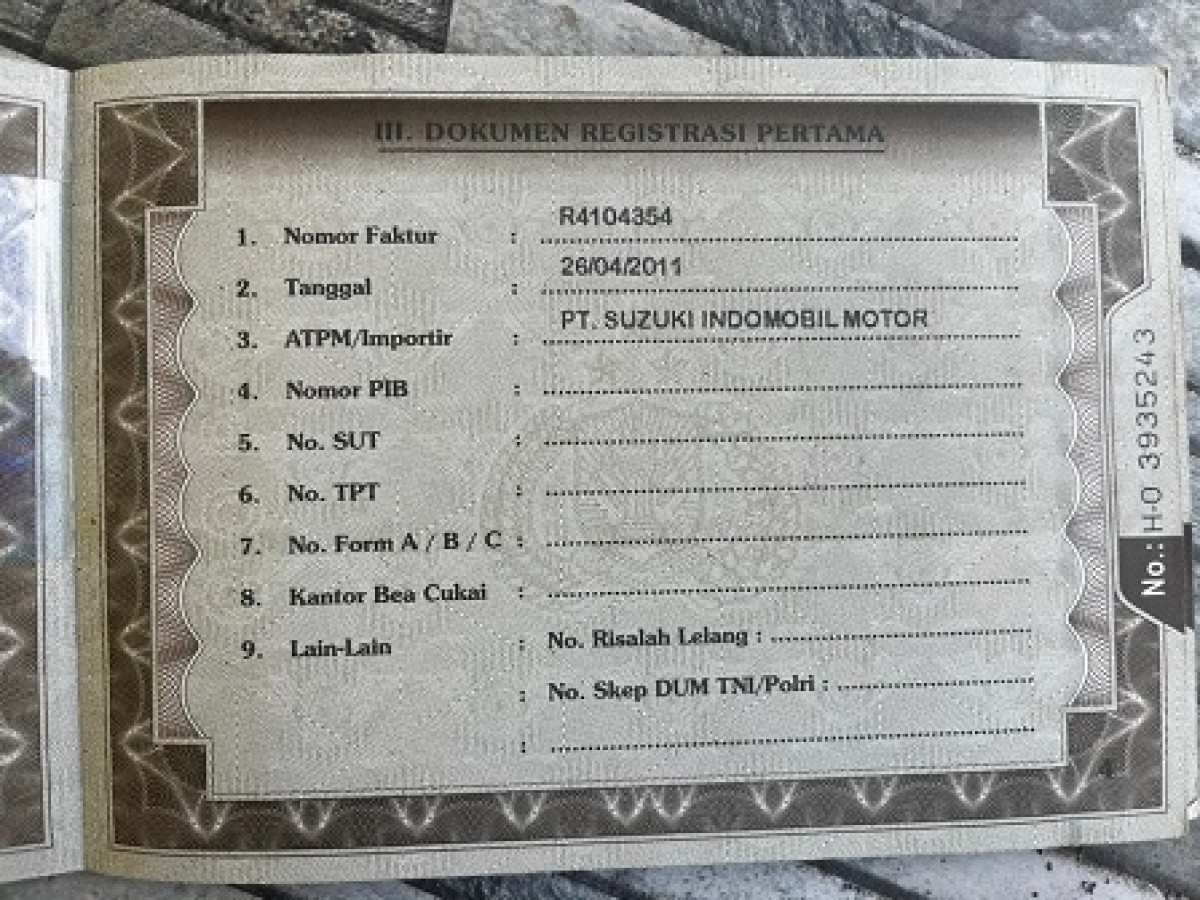 UNIT TIDAK DILAKUKAN PENGECEKAN OLEH TIM SMARTBID// SEBELUM MELAKUKAN PENAWARAN HARAP CEK KONDISI UNIT DAN DOKUMEN TERLEBIH DAHULU// WAJIB MENGHUBUNGI PIC DAN DATANG KE LOKASI UNTUK PENGECEKAN UNIT// UNIT DILELANG APA ADANYA PERMASALAHAN YANG TIMBUL DILUAR TANGGUNG JAWAB SMARTBID// PENGAMBILAN UNIT SLIDE H+2 DARI PELUNASAN // JIKA INGIN MENGAMBIL UNIT HARAP UNTUK KONFIRMASI DAHULU KE SMARTBID // JIKA YANG MENGAMBIL BIDDER HARAP MEMBAWA KTP ASLI // JIKA PENGAMBILAN DIWAKILKAN WAJIB MEMBAWA SURAT KUASA ASLI // UNIT DIKENAKAN BIAYA PPN 1,1% DARI HARGA TERBENTUK// LOKASI UNIT HUBUNGI Bpk. Adi 0852-9971-7153 / CS PUSAT 081188089292// Mesin berfungsi (tidak kuat nanjak), Body tergores (rekondisi cat ulang), AC tidak dingin, Klakson tidak berfungsi, Head unit rusak, Alat mobil tidak, Setir imitasi, Headrest depan tidak ada, Velg imitasi, Mesin rembes oli, Odometer tidak kelihatan, Cover plafon imitasi//Tire (Fr-R) | Rim (Fr-L) | Tire (Rr-L) | Fan Belt | Tire (Rr-R) | Tire (spare) | Clutch Bearing | Tire (Fr-L) | Remote | Spring (FR) | Rim (spare) | Injector | Engine Services (Light) | Brake Master | Gasket Cylinder Head | Aircon Evaporator | Brake Pad (Rr) | Rack Steer | Spring (RR) | Clutch Plate | Spark Plug(s) | Brake Pad (Fr) | Rim (Rr-L) | Battery | Rim (Rr-R) | Rim (Fr-R)/Headrest (Fr-R) | Carpet Floor (Mid) | Tool Kit | Carpet Floor (FR-R) | Carpet Floor (RR) | Interior Saloon | Bolt Crane and Jack | Horn | Combination Meter | Carpet Floor (FR-L) | Steering-wheel | Headrest (Fr-L) | Ceiling Lamp (Fr) | Carpet | Ceiling Trim | Head Unit/Fender Repair (Rr-R) | Door Repair (Trunk) | Rim cover (Rr-L) | Rim cover (Rr-R) | Turn Lamp (Rr-R) | Turn Lamp (Fr-R) | Emblem | Turn Lamp (Fr-L) | Taillight (Rr-R) | Engine Hood Repair | Fender Repair (Fr-R) | Taillight (Rr-L) | Side Skirt Repair (L) | Windshield Wiper | Rim cover (Fr-R) | Side Skirt Repair (R) | Rim cover (Fr-L) | Fender Repair (Rr-L) | Turn Lamp (Rr-L) | Headlight (Fr-R) | Headlight (Fr-L) | Bumper Repair (Fr) | Mirror (L) | Mirror (R ) | Bumper Repair (Rr) | Fender Repair (Fr-L)