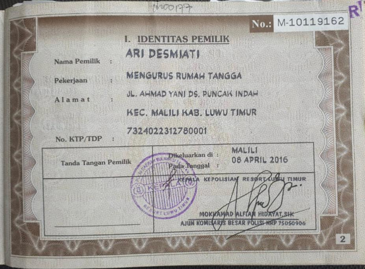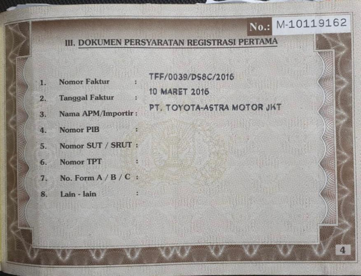 No. Rangka | : | MR0DS8CD0G0261343 |