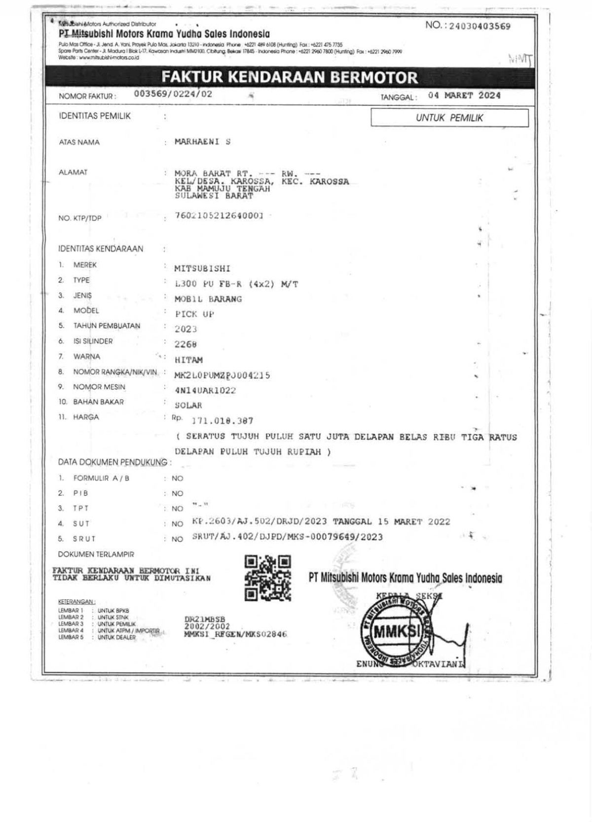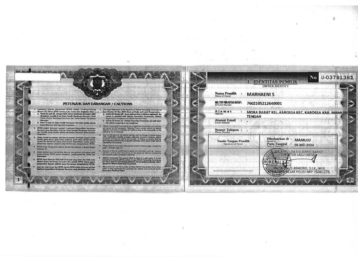 FOTO NOKA DAN NOSIN T/A // UNIT TIDAK DILAKUKAN PENGECEKAN OLEH TIM SMARTBID// SEBELUM MELAKUKAN PENAWARAN HARAP CEK KONDISI UNIT DAN DOKUMEN TERLEBIH DAHULU// WAJIB MENGHUBUNGI PIC DAN DATANG KE LOKASI UNTUK PENGECEKAN UNIT// UNIT DILELANG APA ADANYA PERMASALAHAN YANG TIMBUL DILUAR TANGGUNG JAWAB SMARTBID// PENGAMBILAN UNIT SLIDE H+2 DARI PELUNASAN // JIKA INGIN MENGAMBIL UNIT HARAP UNTUK KONFIRMASI DAHULU KE SMARTBID // JIKA YANG MENGAMBIL BIDDER HARAP MEMBAWA KTP ASLI // JIKA PENGAMBILAN DIWAKILKAN WAJIB MEMBAWA SURAT KUASA ASLI // UNIT DIKENAKAN BIAYA PPN 1,1% DARI HARGA TERBENTUK// PEMENANG LELANG DIKENAKAN BIAYA ROYA FIDUSIA 100.000 // HUBUNGI PIC ZUlhak 085241371340