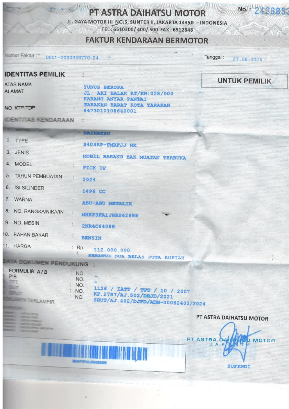 UNIT TIDAK DILAKUKAN PENGECEKAN OLEH TIM SMARTBID// SEBELUM MELAKUKAN PENAWARAN HARAP CEK KONDISI UNIT DAN DOKUMEN TERLEBIH DAHULU// WAJIB MENGHUBUNGI PIC DAN DATANG KE LOKASI UNTUK PENGECEKAN UNIT// UNIT DILELANG APA ADANYA PERMASALAHAN YANG TIMBUL DILUAR TANGGUNG JAWAB SMARTBID// PENGAMBILAN UNIT SLIDE H+2 DARI PELUNASAN // JIKA INGIN MENGAMBIL UNIT HARAP UNTUK KONFIRMASI DAHULU KE SMARTBID // JIKA YANG MENGAMBIL BIDDER HARAP MEMBAWA KTP ASLI // JIKA PENGAMBILAN DIWAKILKAN WAJIB MEMBAWA SURAT KUASA ASLI // UNIT DIKENAKAN BIAYA PPN 1,1% DARI HARGA TERBENTUK // LOKASI UNIT HUBUNGI CS PUSAT 081188089292