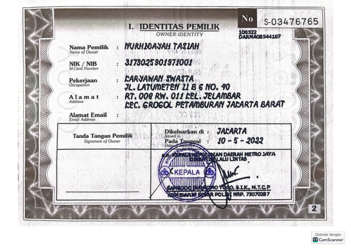 | Pajak STNK | : | - |