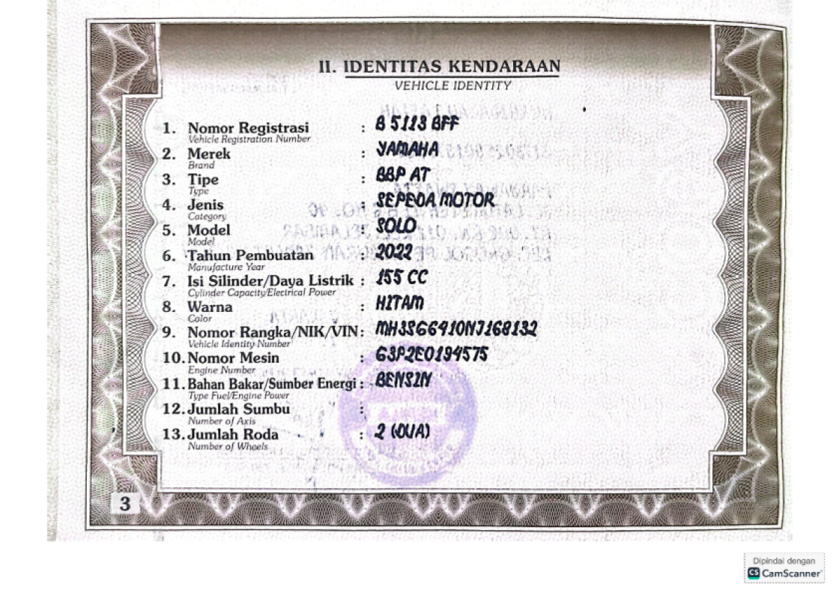 | No. Polisi | : | B 5113 BFF |