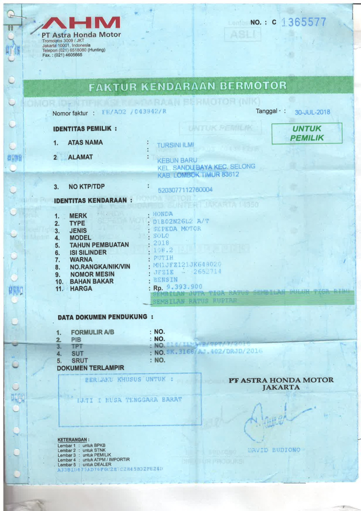 SEBELUM MELAKUKAN PENAWARAN UNIT PESERTA LELANG WAJIB MELAKUKAN PENGECEKAN UNIT DAN DOKUMEN TERLEBIH DAHULU // PIC FIRMAN 62 812-3674-7297 / CHANDRA 0878-6190-3208 / UNIT DIKENAKAN BIAYA PPN 1.1% DARI HARGA TERBENTUK // NOMOR RANGKA DIRUSAK //