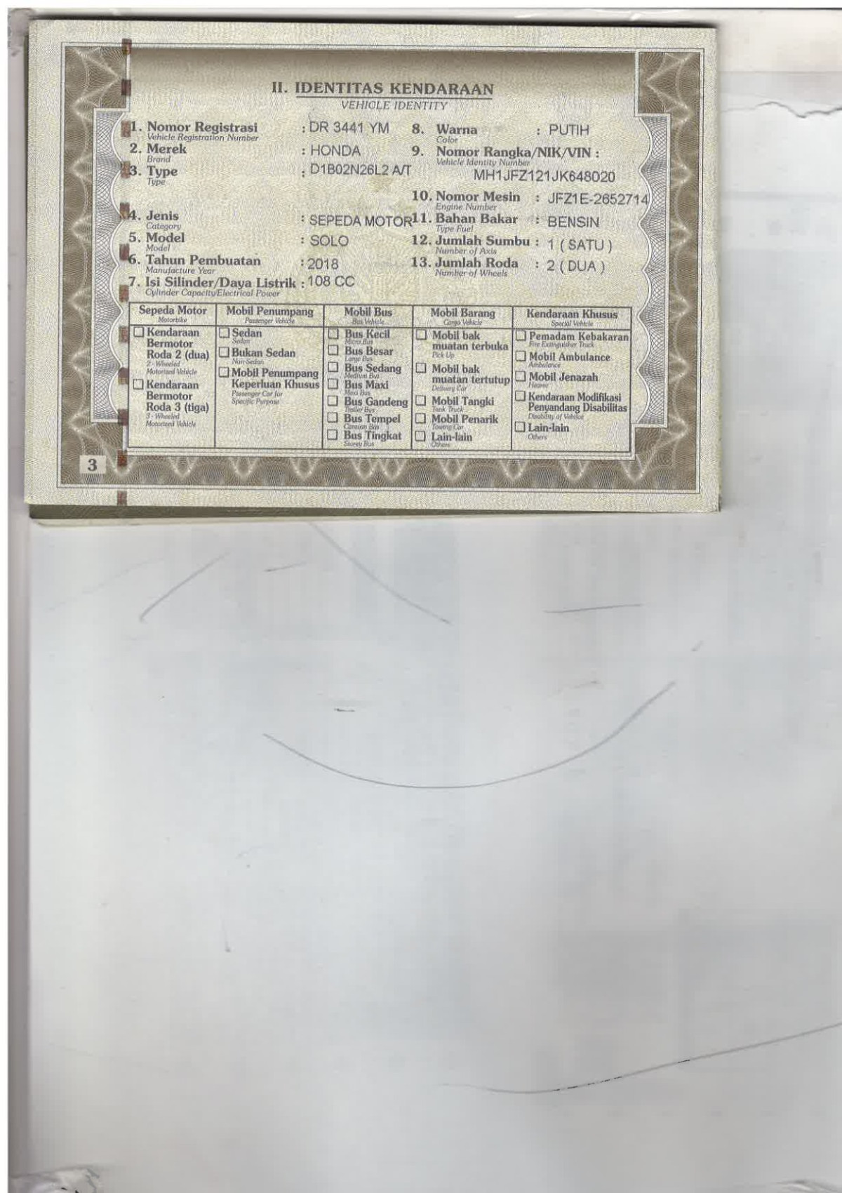 | No. Rangka | : | MH1JFZ121JK648020 |